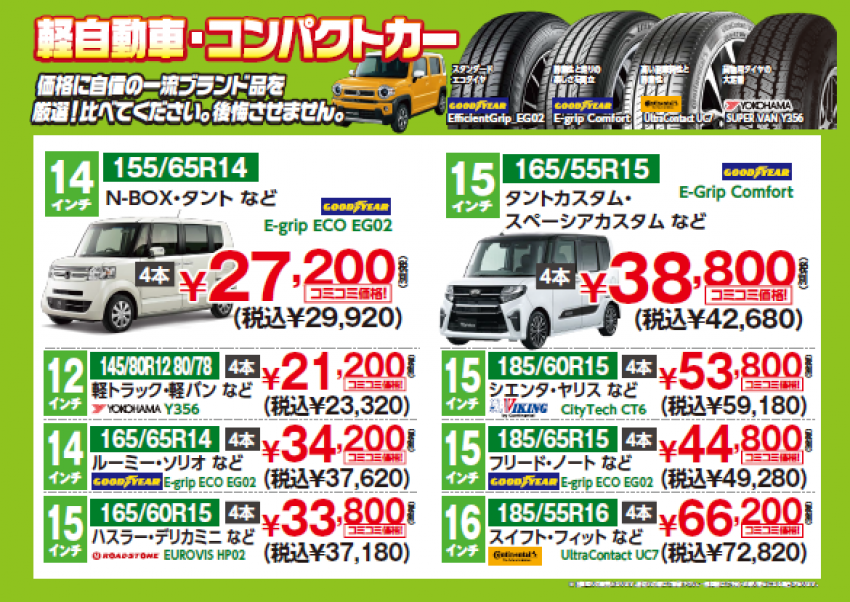 タイヤ市場では、現在 軽自動車 、コンパクトカー サイズのタイヤが SELL になっています。