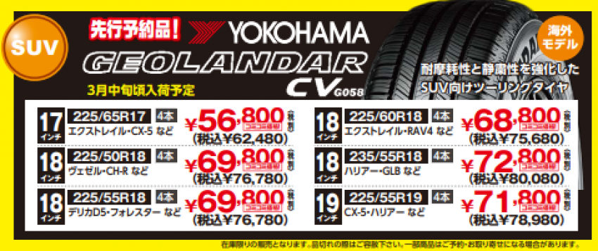 【超お買い得】タイヤ市場のチラシ掲載!ジオランダーCV G058がSUVにおすすめな理由