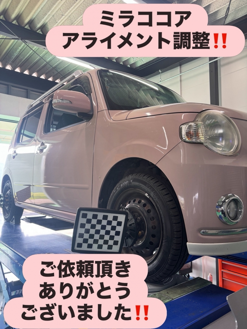 【アライメント調整】松山市からお越しのダイハツ・ミラココアの「お車の骨盤矯正」!