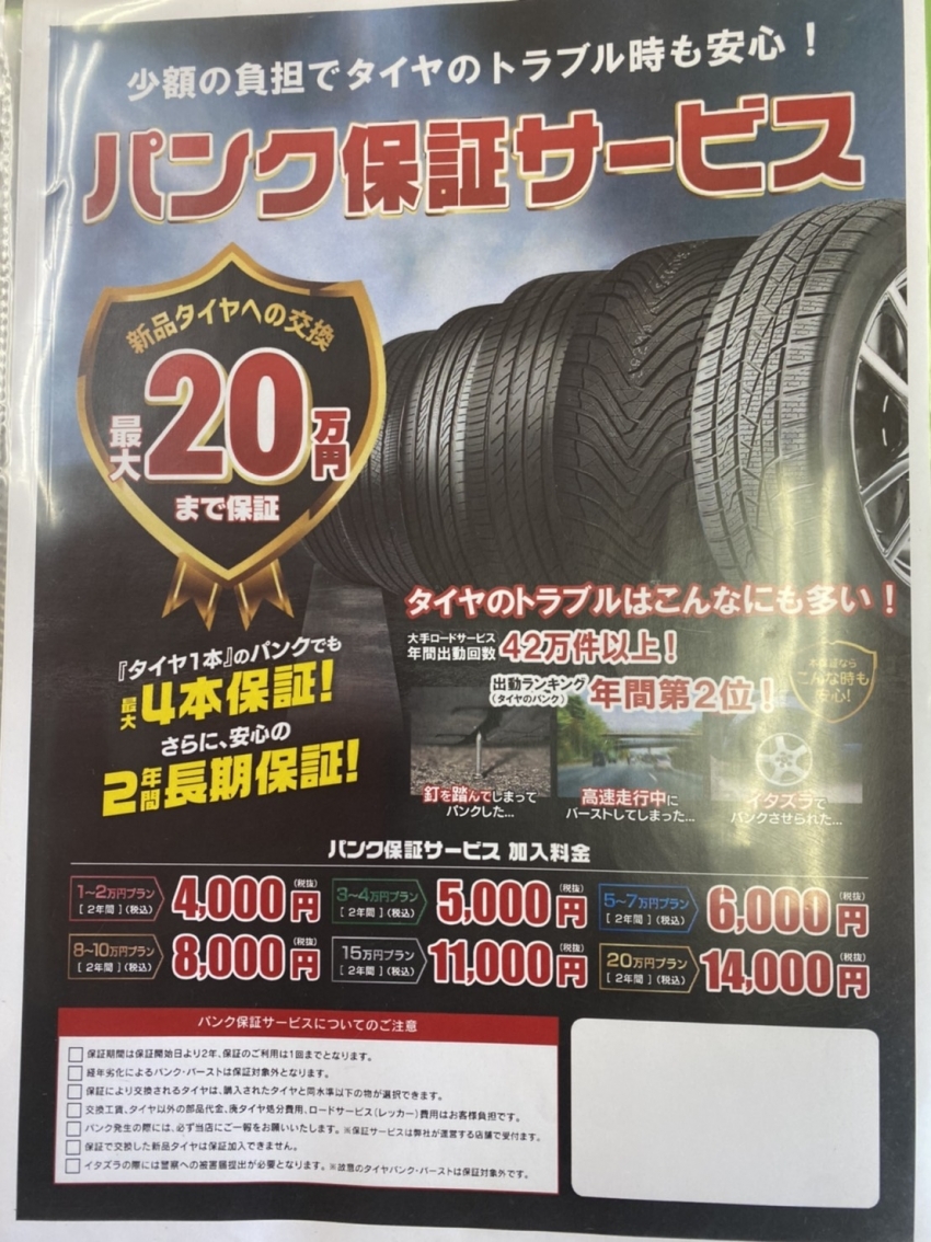 【これは安心!!】冬に増加するパンクの訳と対策 パンク保証 付けられます