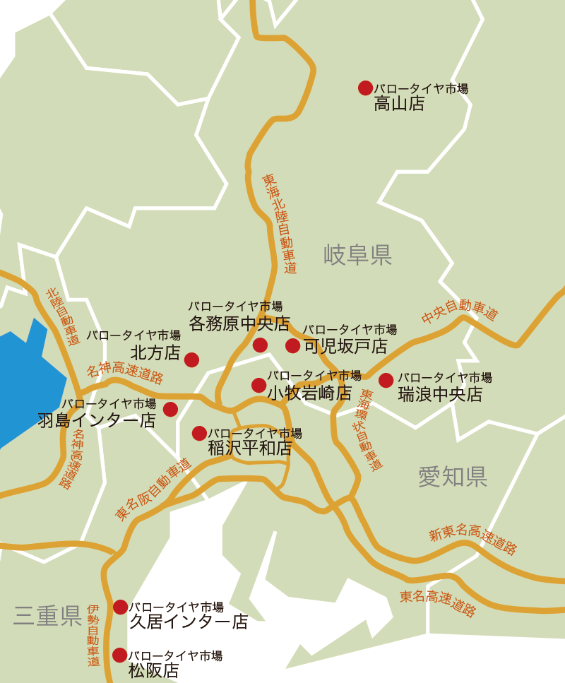 - 東海エリア全店舗