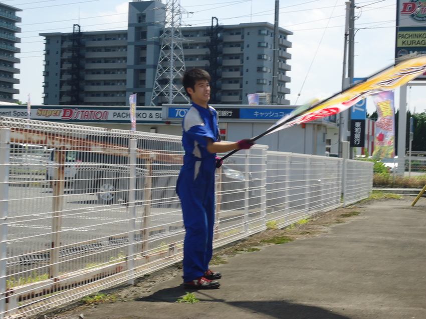 今日も当店のスタッフも暑さに負けず元気に、旗振り中です。