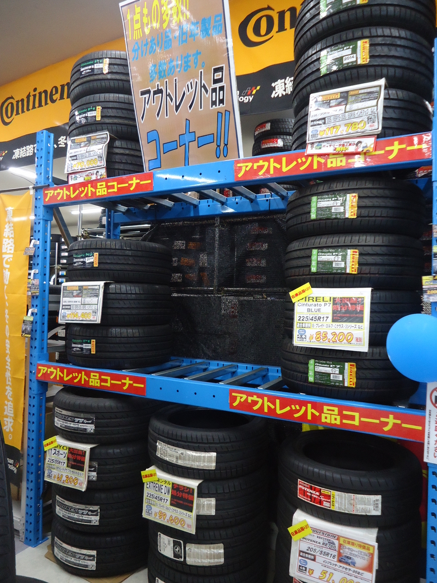 当店ではタイヤのアウトレットコーナも店内・店外で展開しています。