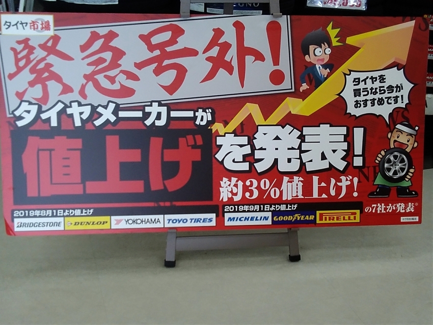 国産メーカー(ブリヂストン・ヨコハマタイヤなど)は8月から値上げになり
