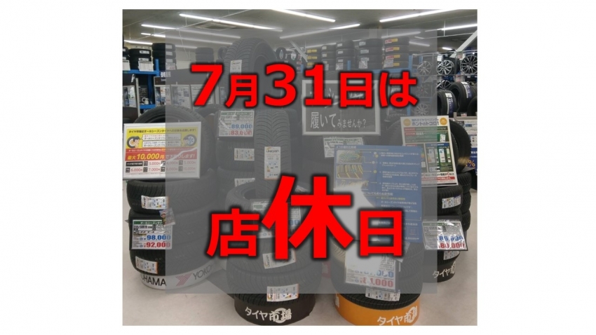 【店休日】7月31日倉賀野店 & お得にタイヤ・ホイールを買える告知!!