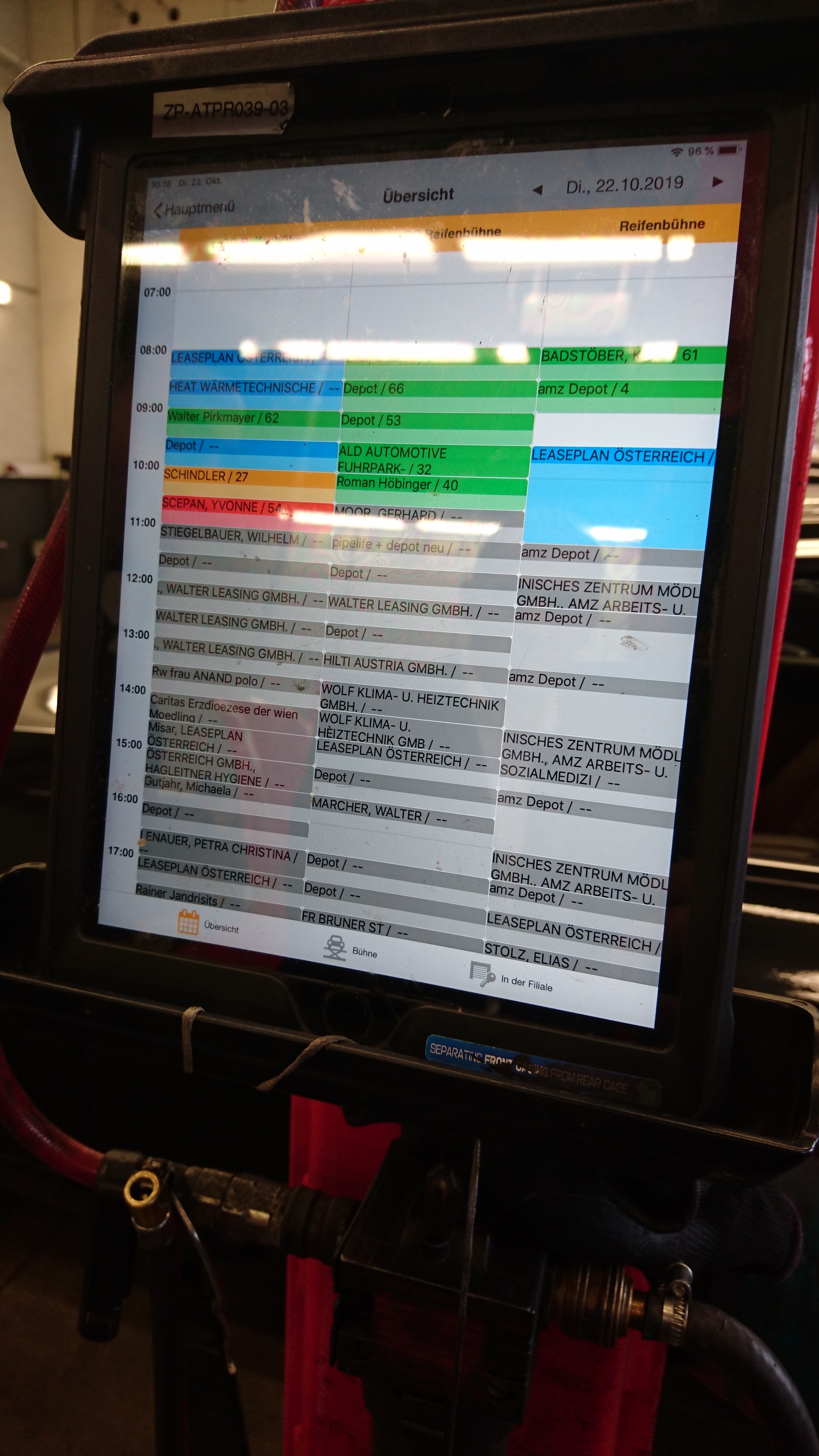 ペーパーレス化が推進されており、予約状況や作業伝票等がシステムで一元管理されていました。