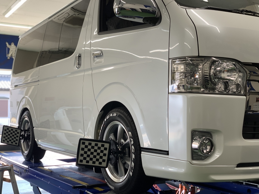 本日はハイエースでアライメント調整をやらせて頂きました♪