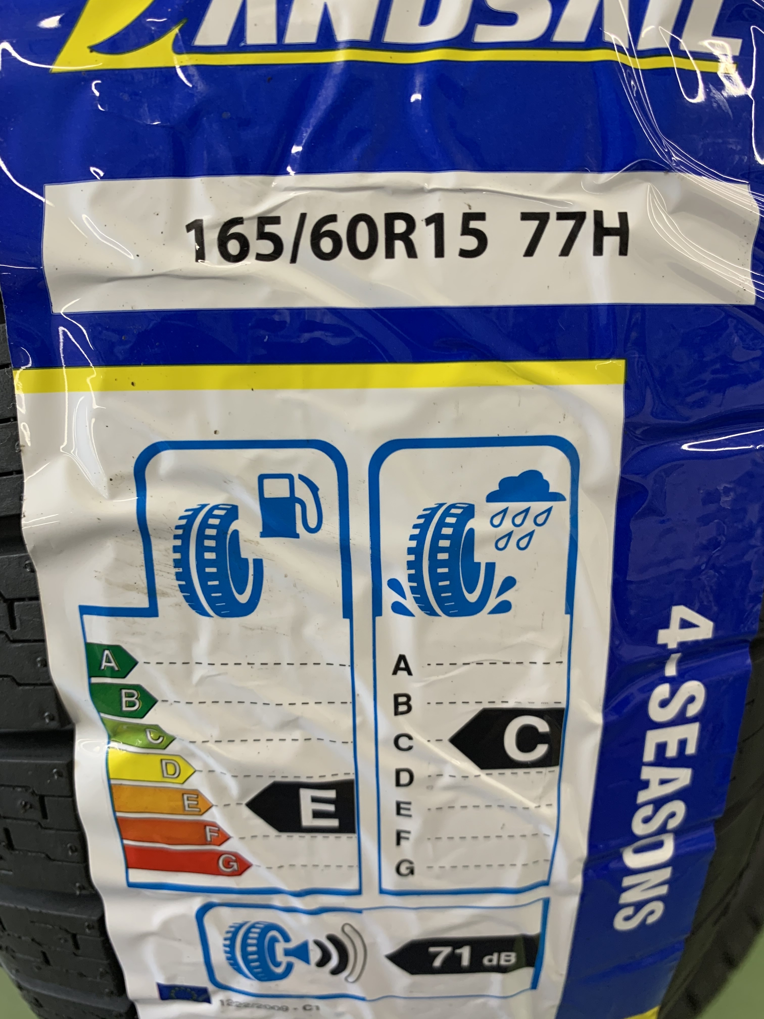 銘柄は4シーズンズ、サイズが165/60R15となっております。