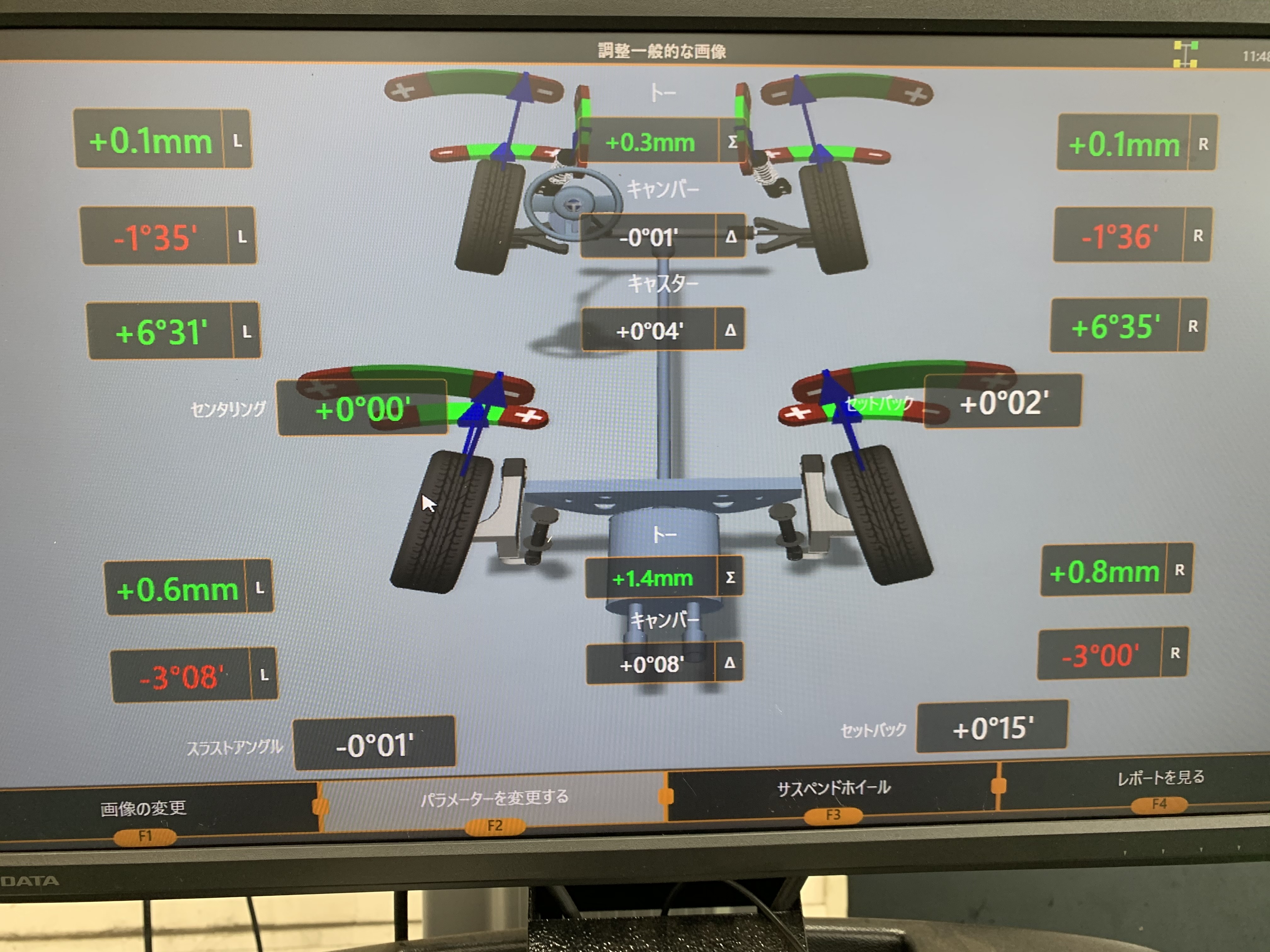 ホイールアライメントをお客様の指定数値に調整する事も可能ですよ♪