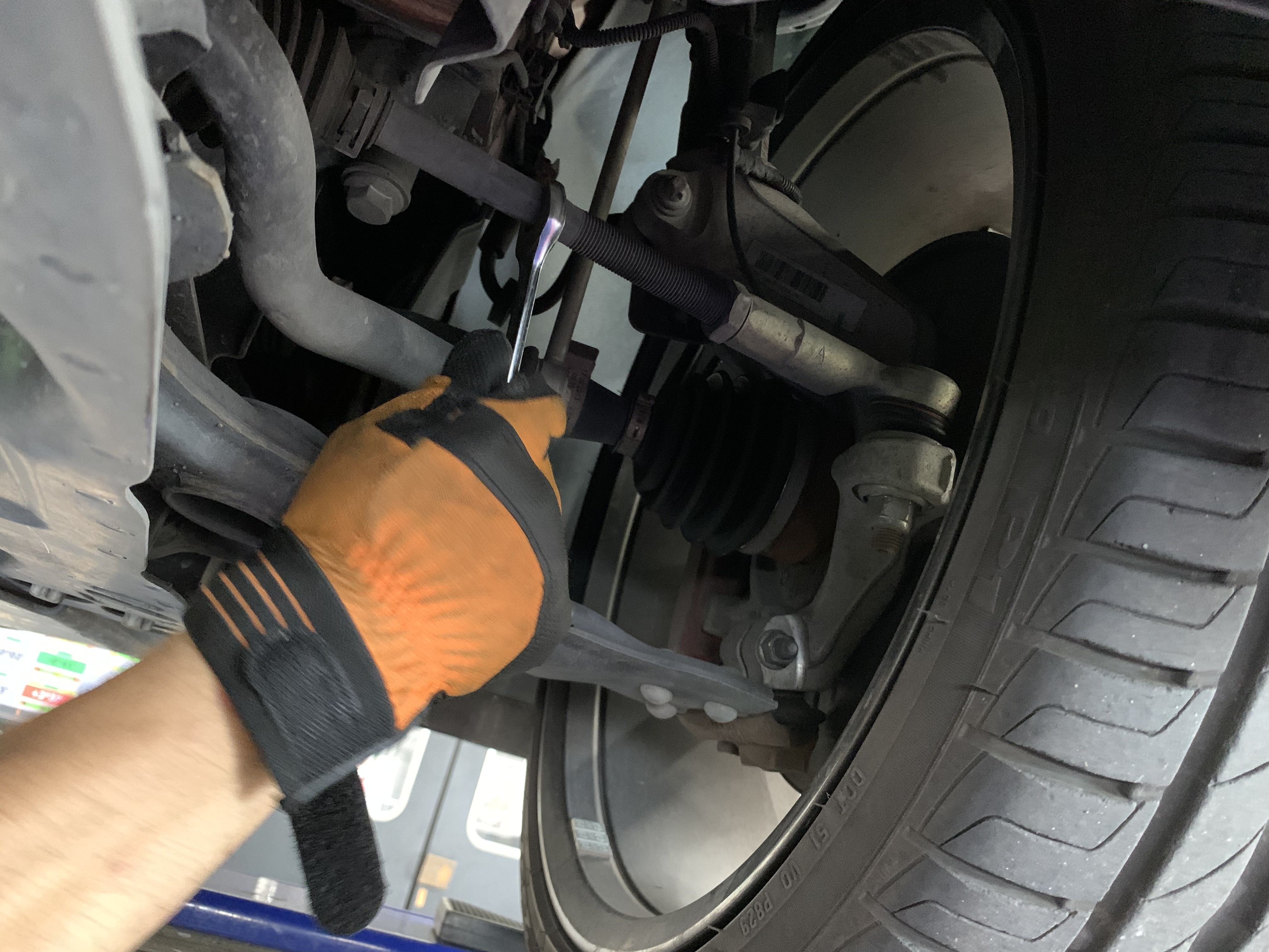 この部分のナットを緩めてあげるとタイロッドを伸ばし縮みできるようになります!