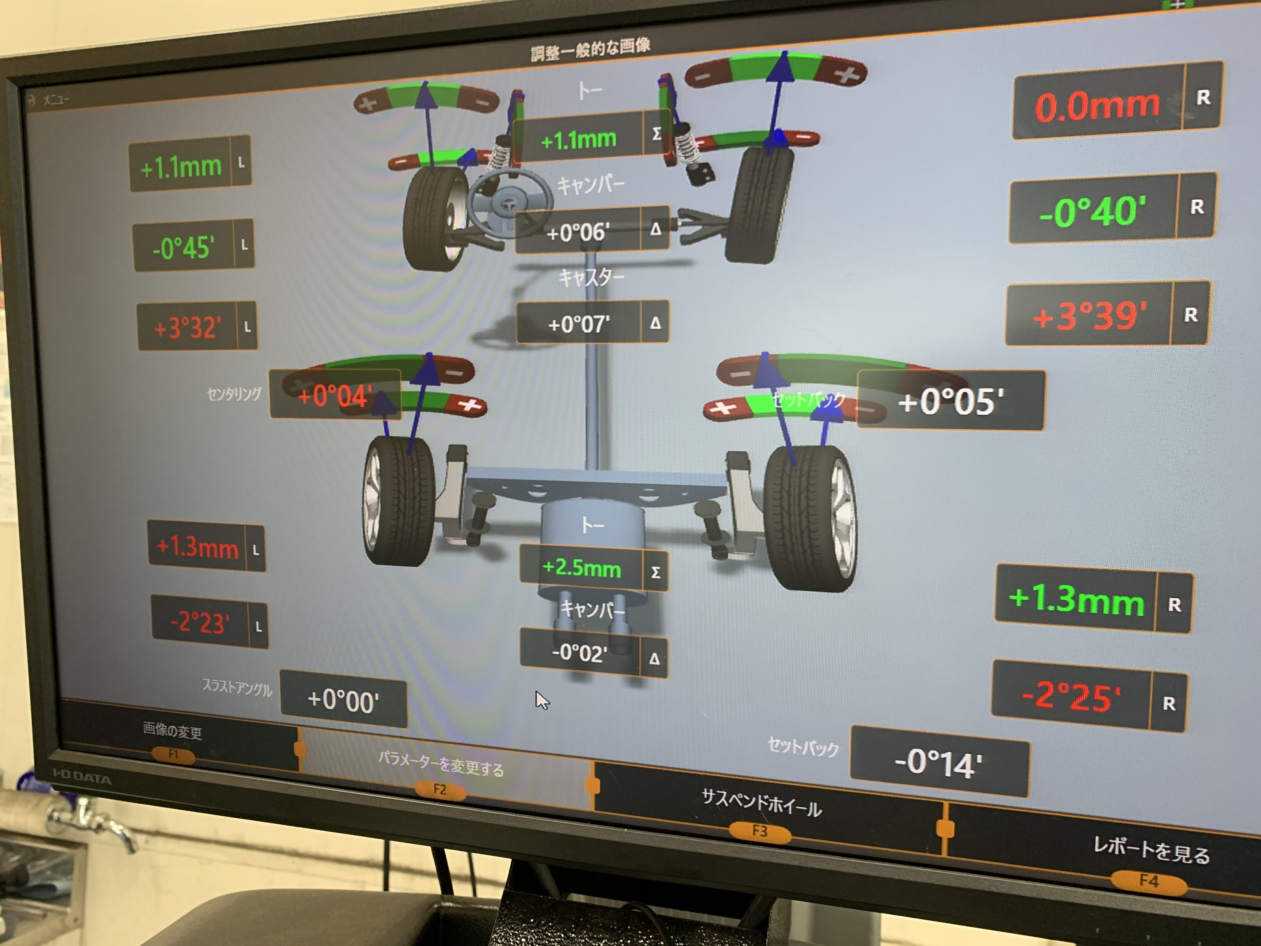 ジュリエッタの場合はフロント・リアのトウ角を調整できるようになってます。