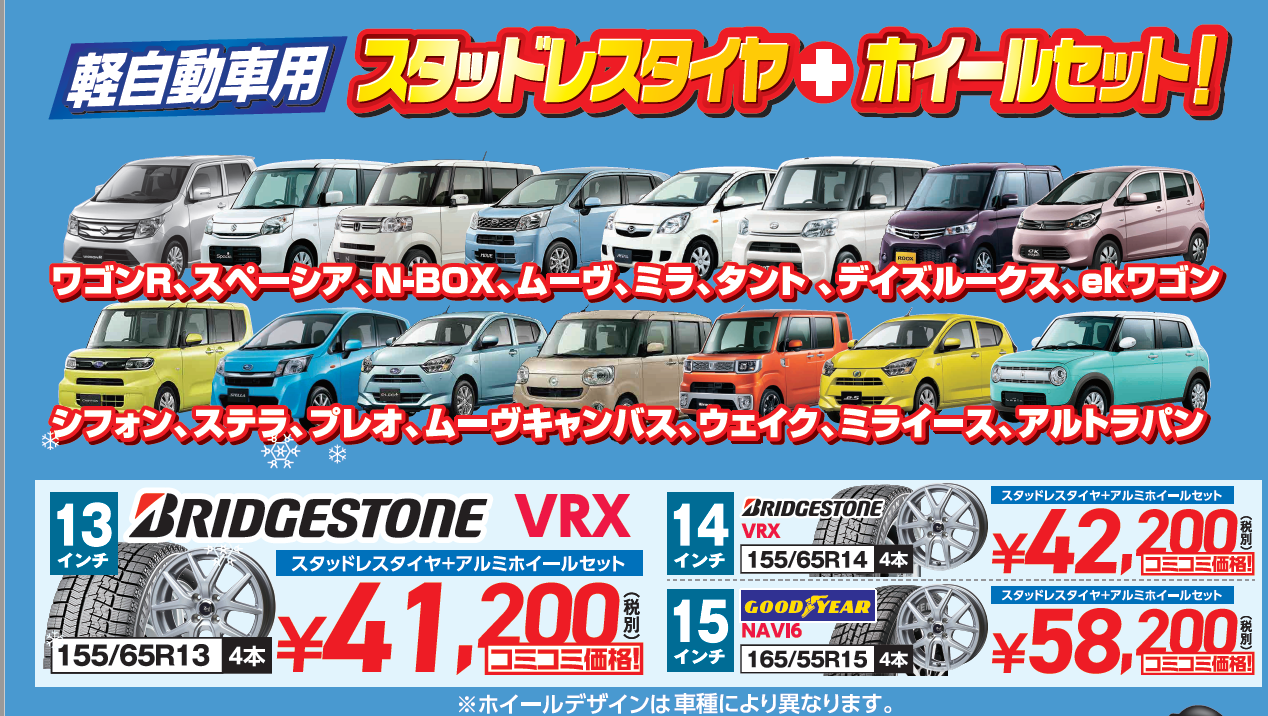 ブリヂストン ブリザック VRXで 13インチ、14インチ、15インチでご用意しました!