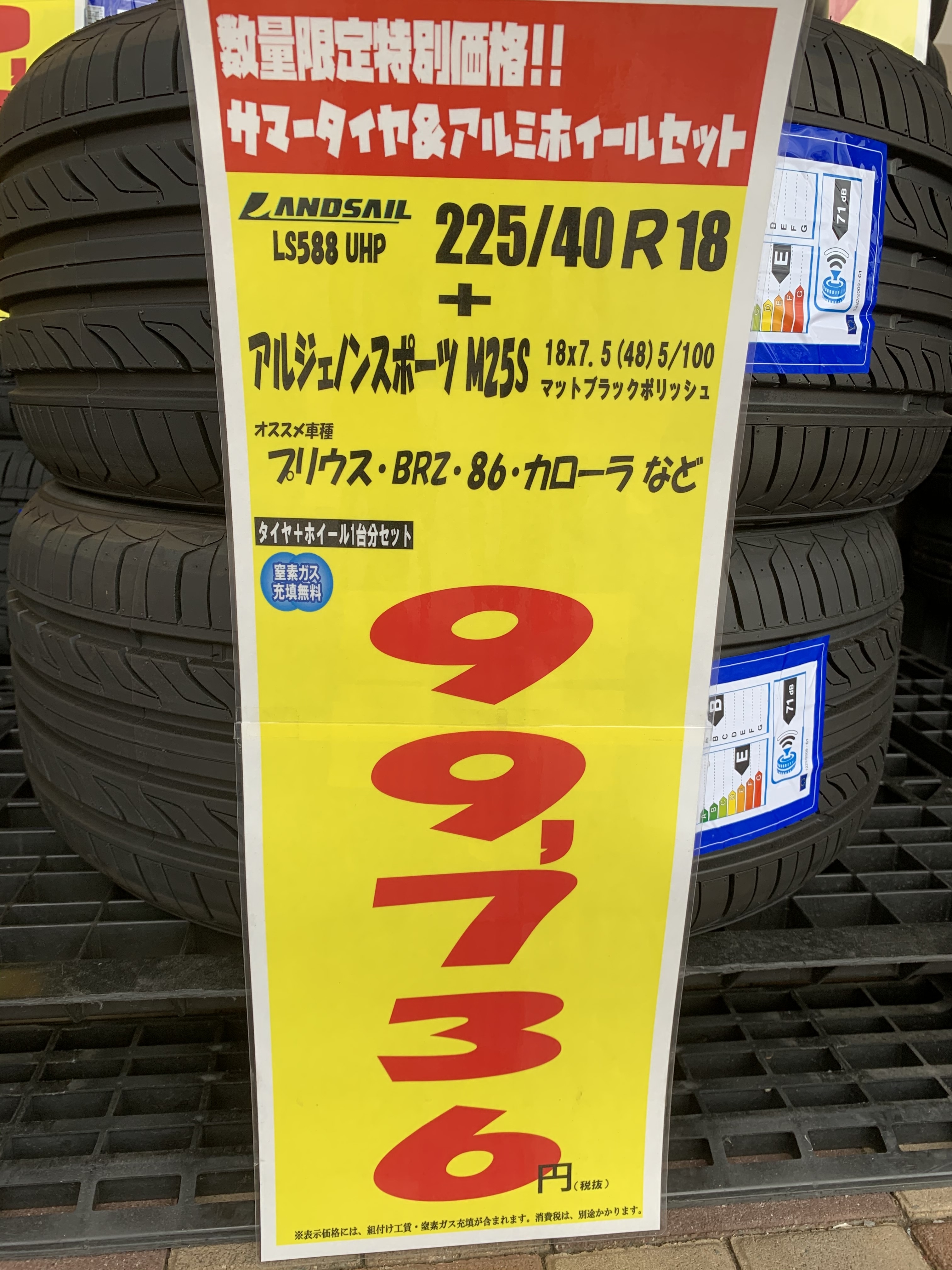しかも!タイヤランドセイルLS588 UHP 225/40R18のセット付き♪