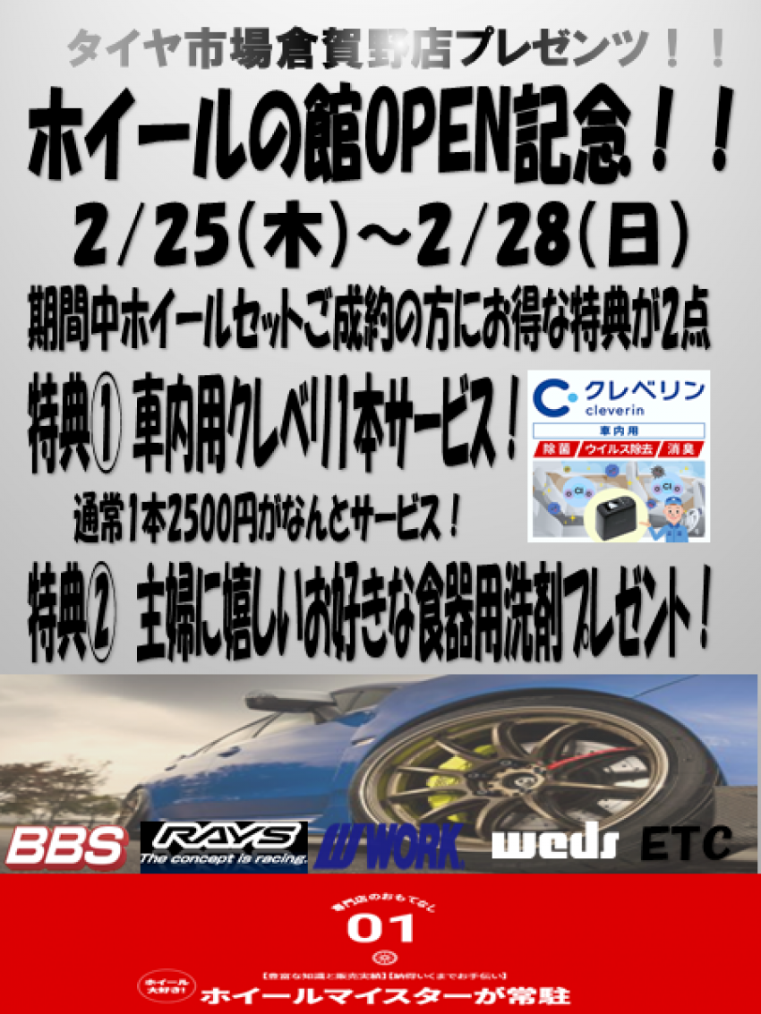 期間中にホイールセットをご成約の方にはお得な特典が御座いますのでこの機会にご利用ください!