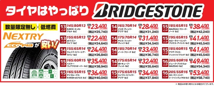 ブリヂストン、ヨコハマ、グッドイヤー等々一流ブランド品が安い!