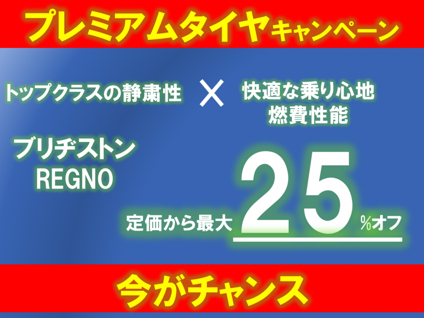 ブリヂストンが誇る最高級プレミアムタイヤがなんと最大25%オフ!!