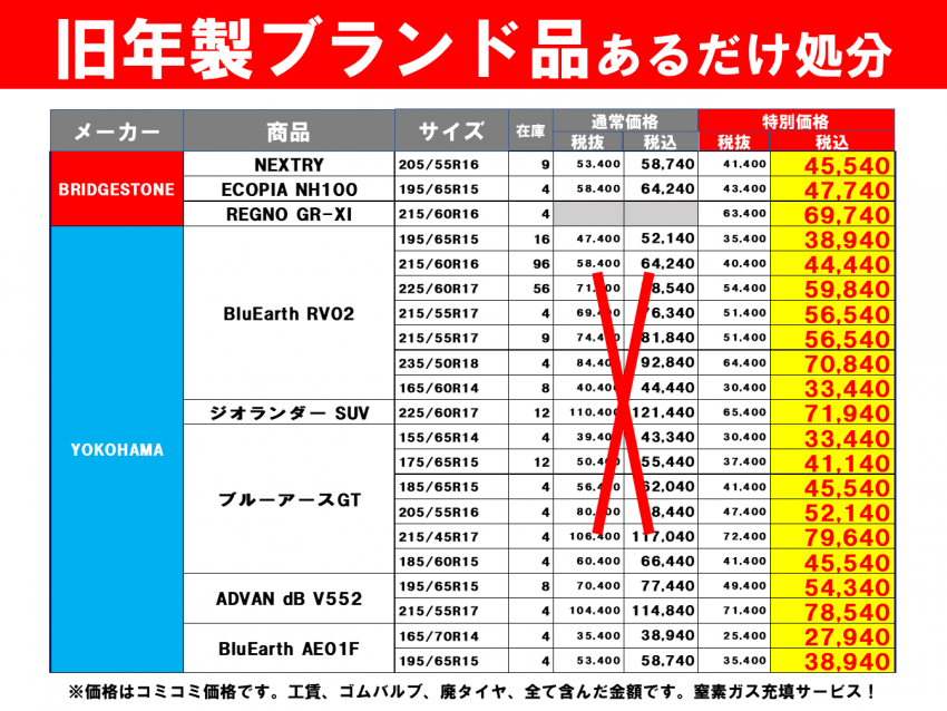 タイヤ市場高崎倉賀野店では旧年製一流ブランドタイヤ処分セール開催中!!
