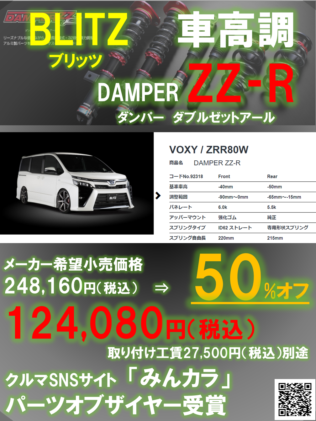 見た目格好良く☆乗り心地は損なわれないBLITZのZZRは如何でしょうか?