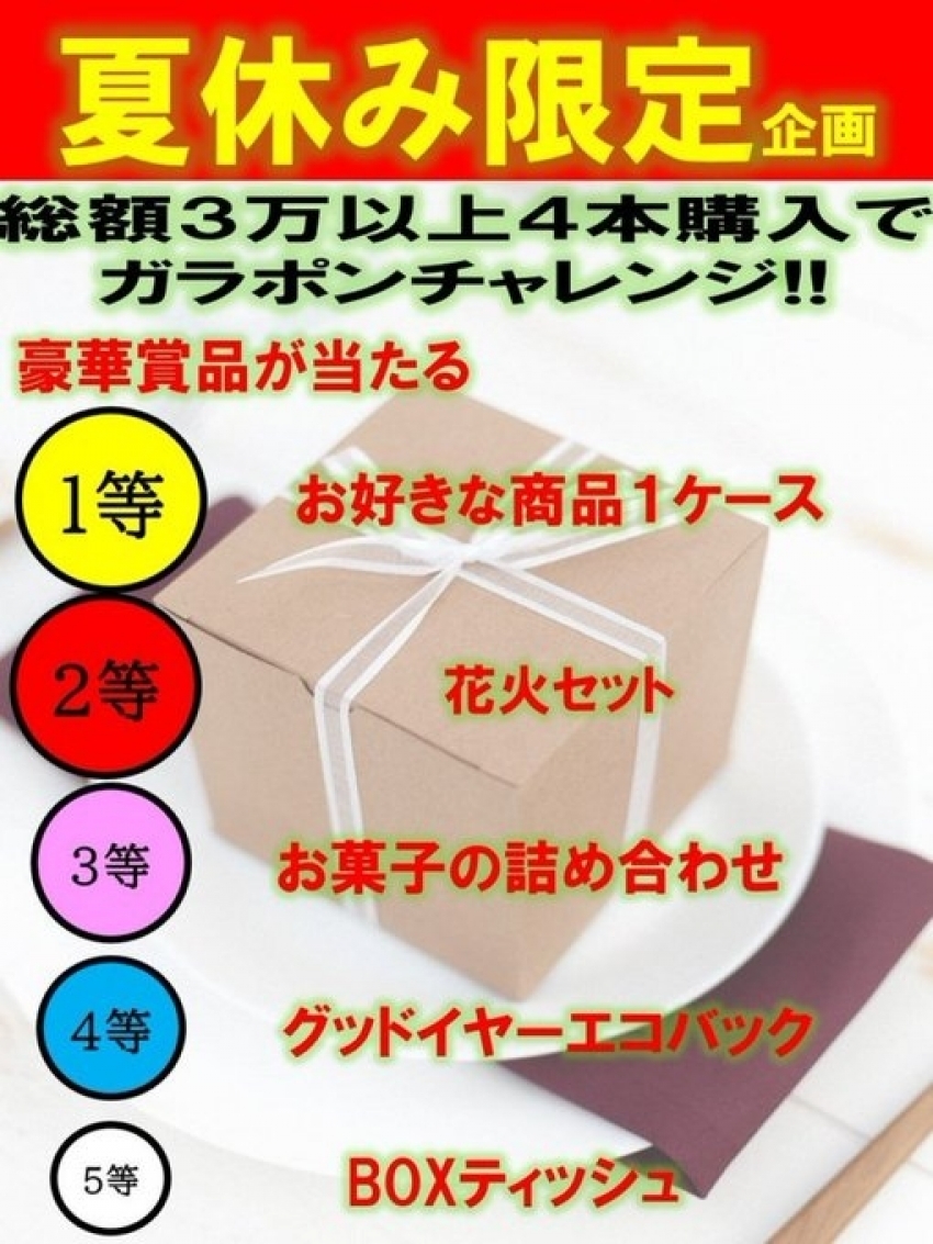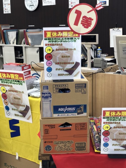 今回夏休み限定で総額3万円以上4本ご購入のお客様限定でガラポンチャレンジができます!!!