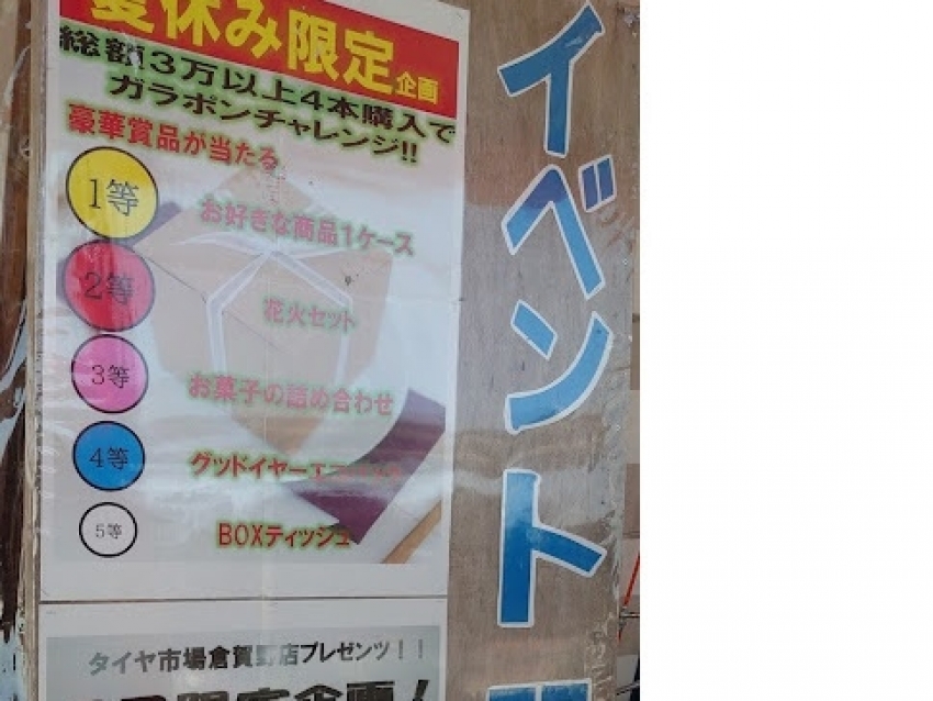 ① タイヤ購入でガラポンイベント!!景品が当たります!(^^)!