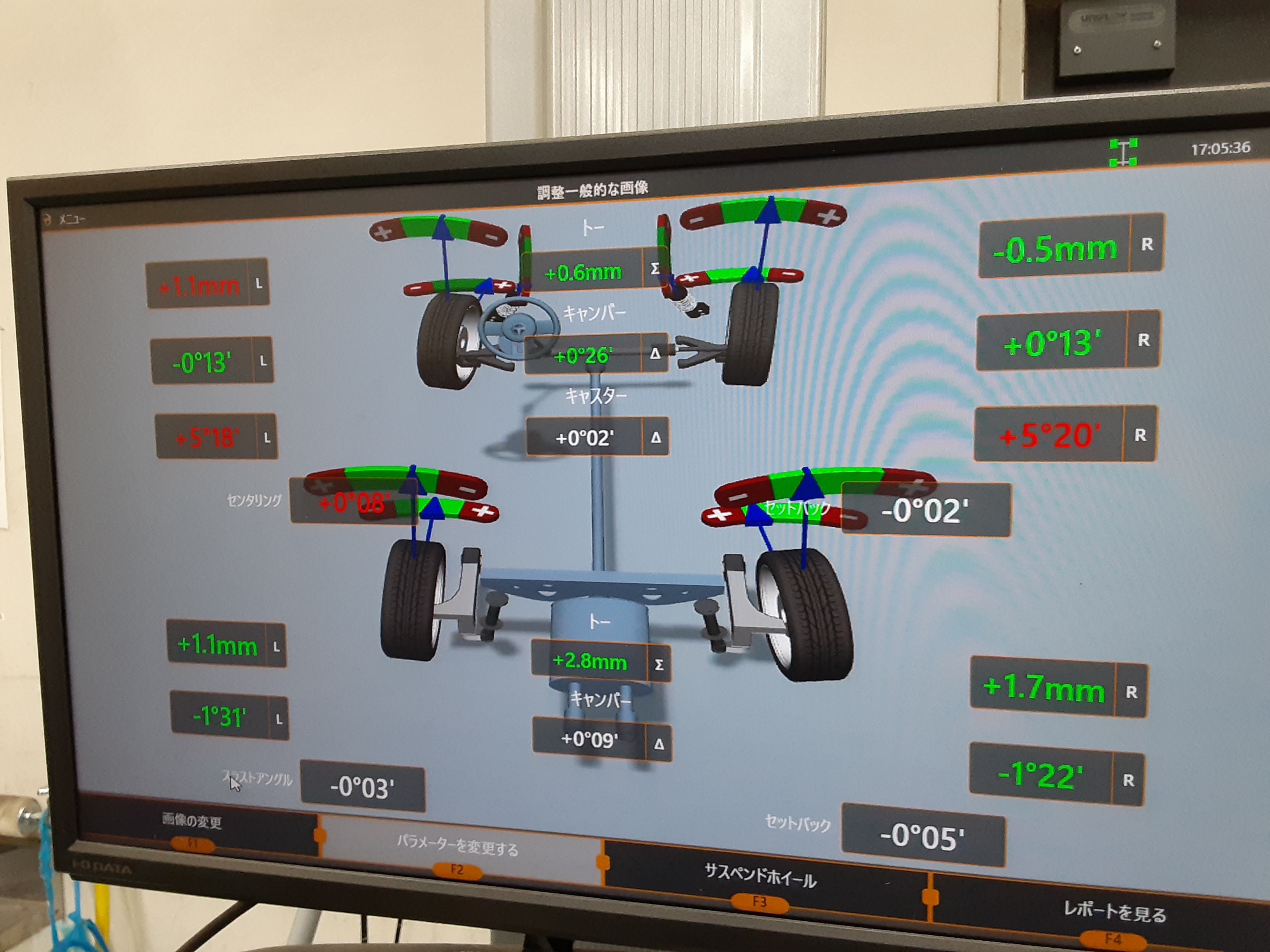 やはり足回り交換するとズレでますのでアライメント調整は必須ですね!!