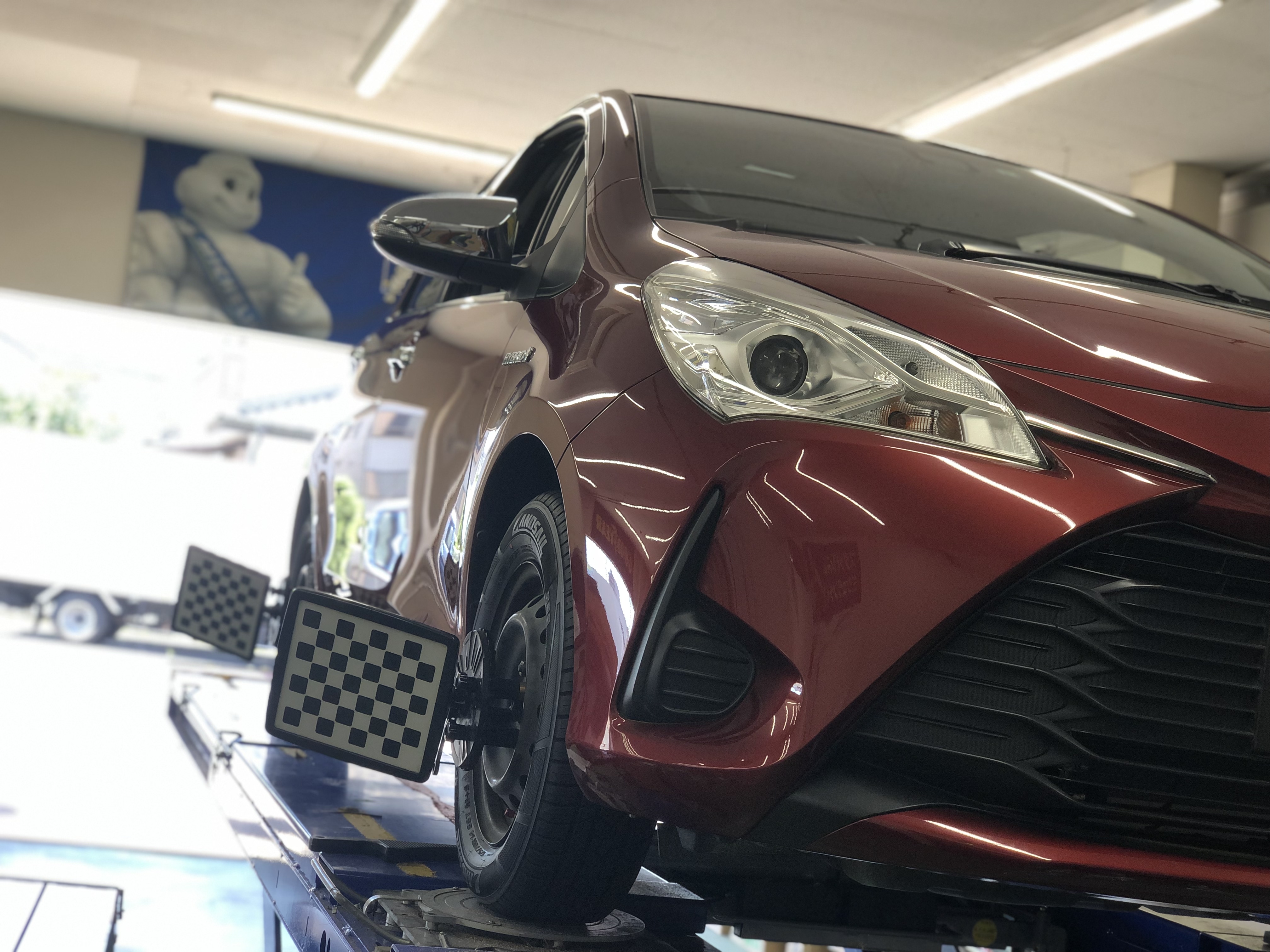 ヴィッツのタイヤ交換とアライメント調整作業を承りました(^O^)