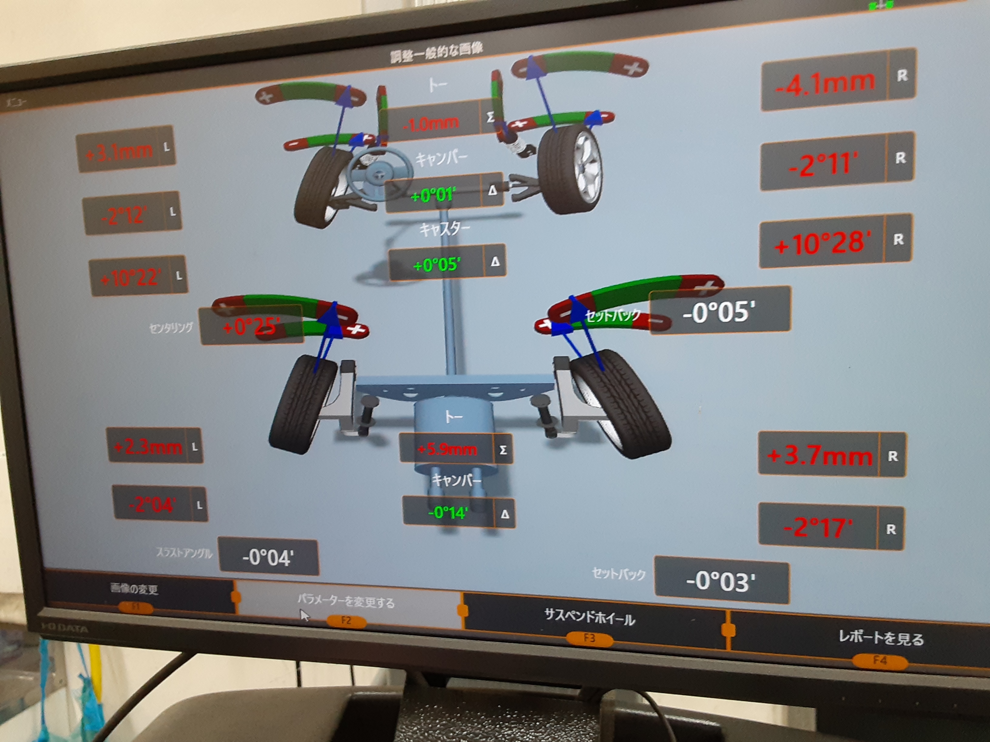 先程、ダッヂチャージャーのアライメント調整が入りました!