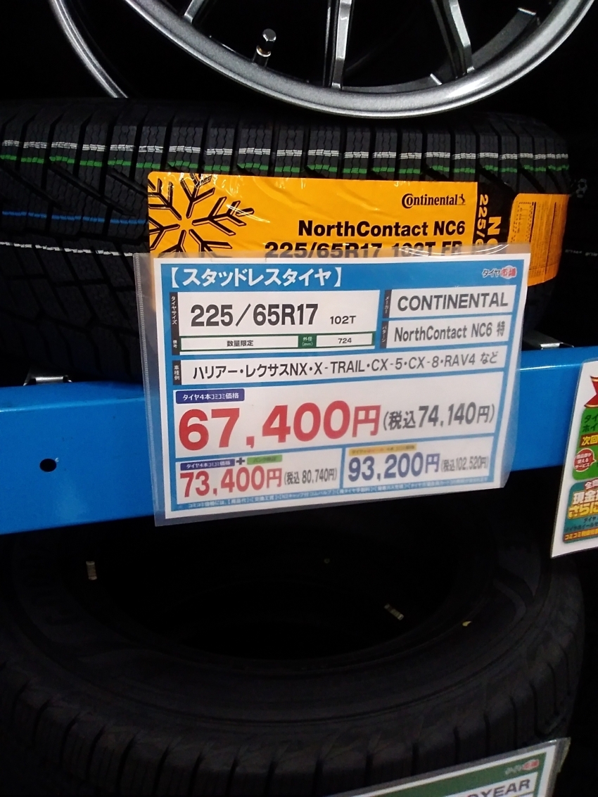 今回は、SUVに一番多いサイズで225/65R17というサイズで