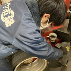 タイヤ交換後、新品タイヤ装着状態でアライメント調整!