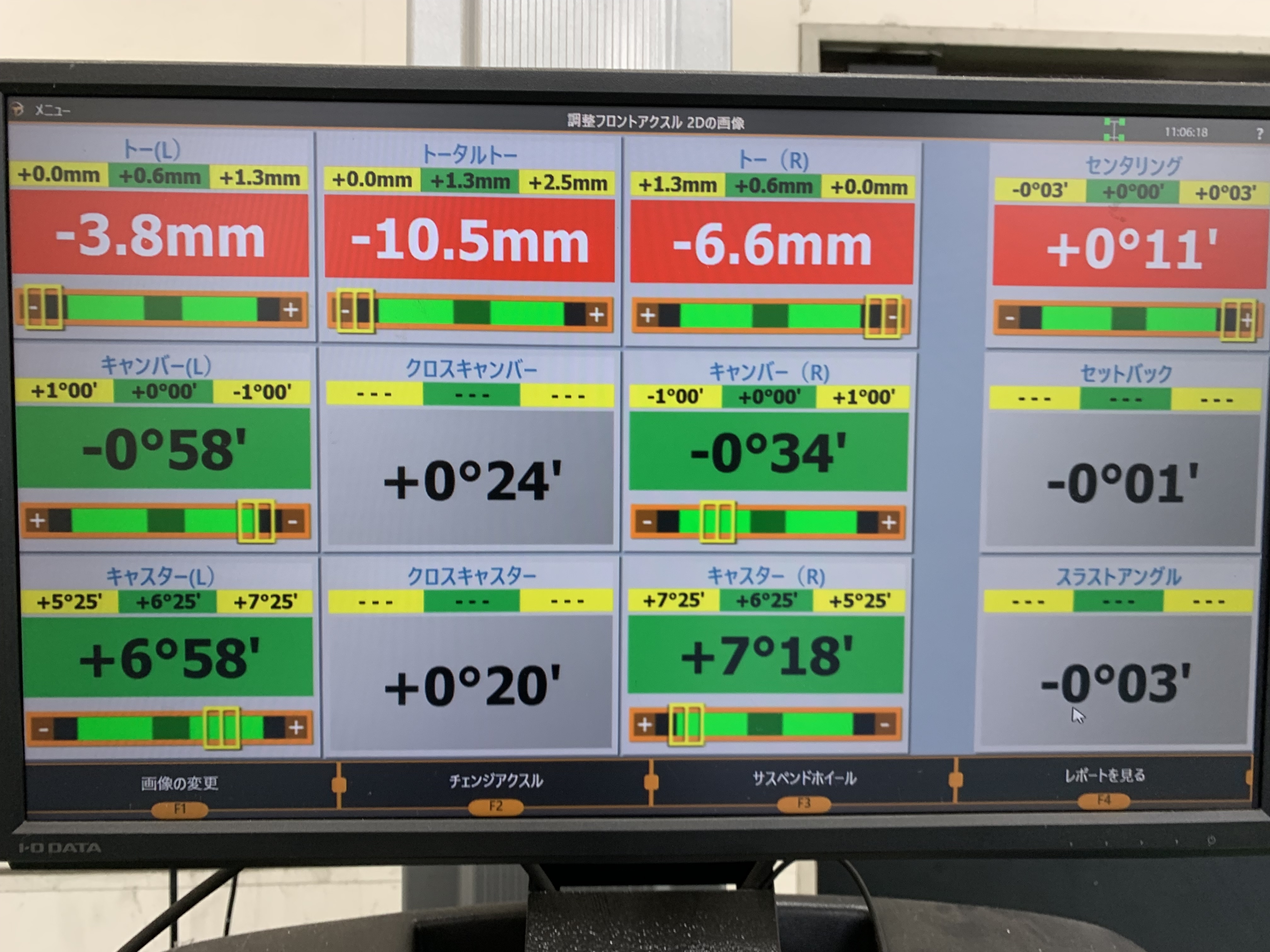 お車によって変わる基準値はミリ単位での調整となりますのでしっかりと調整をさせて頂きます!