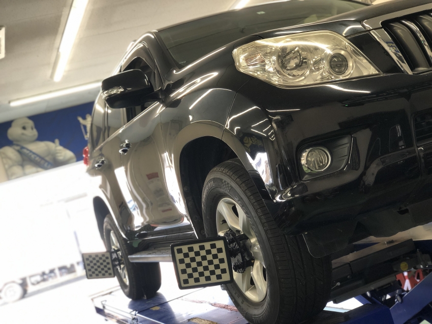 ランクルプラドにお乗りのお客様よりアライメント調整のご用命をいただきました(≧▽≦)