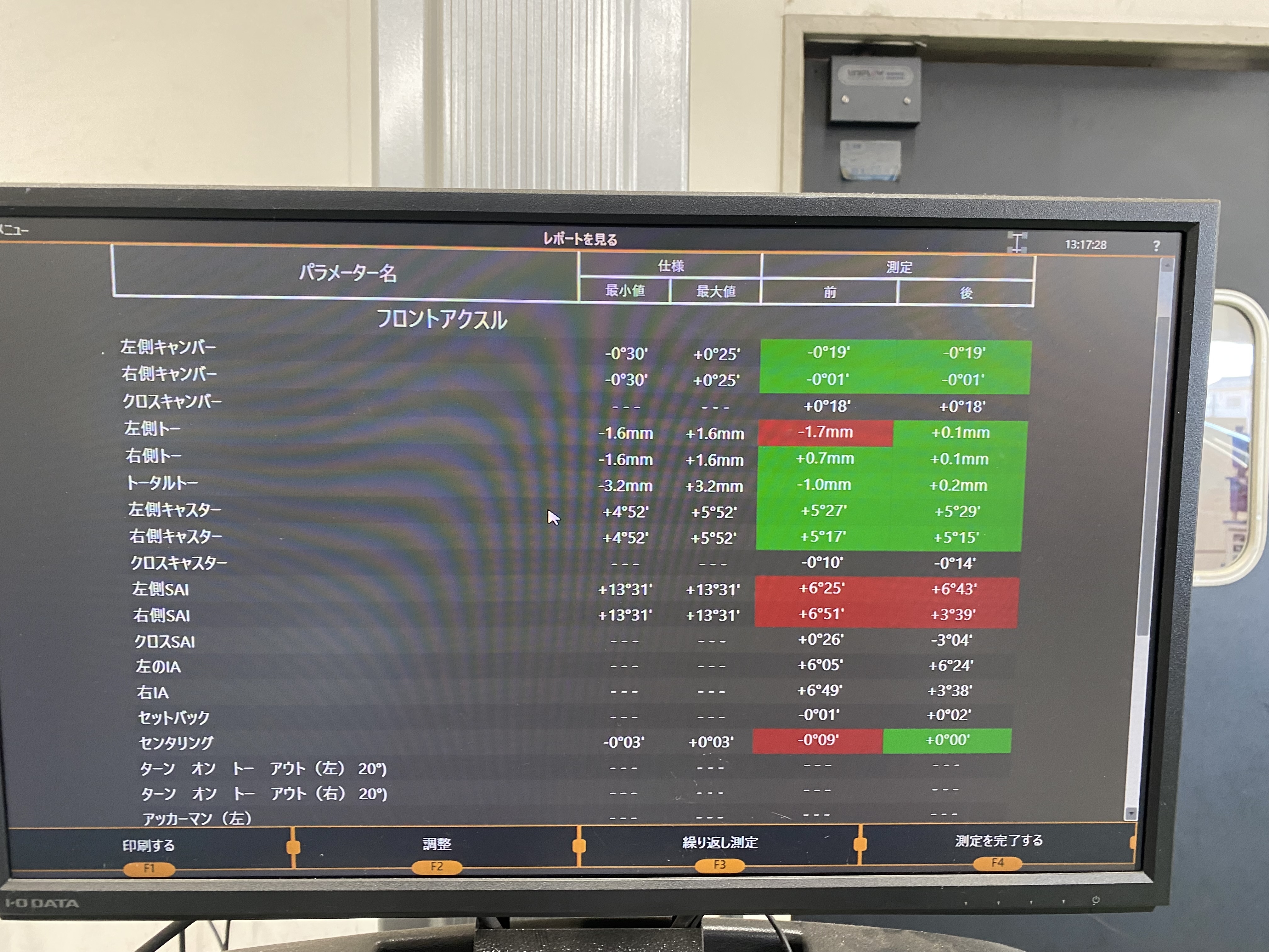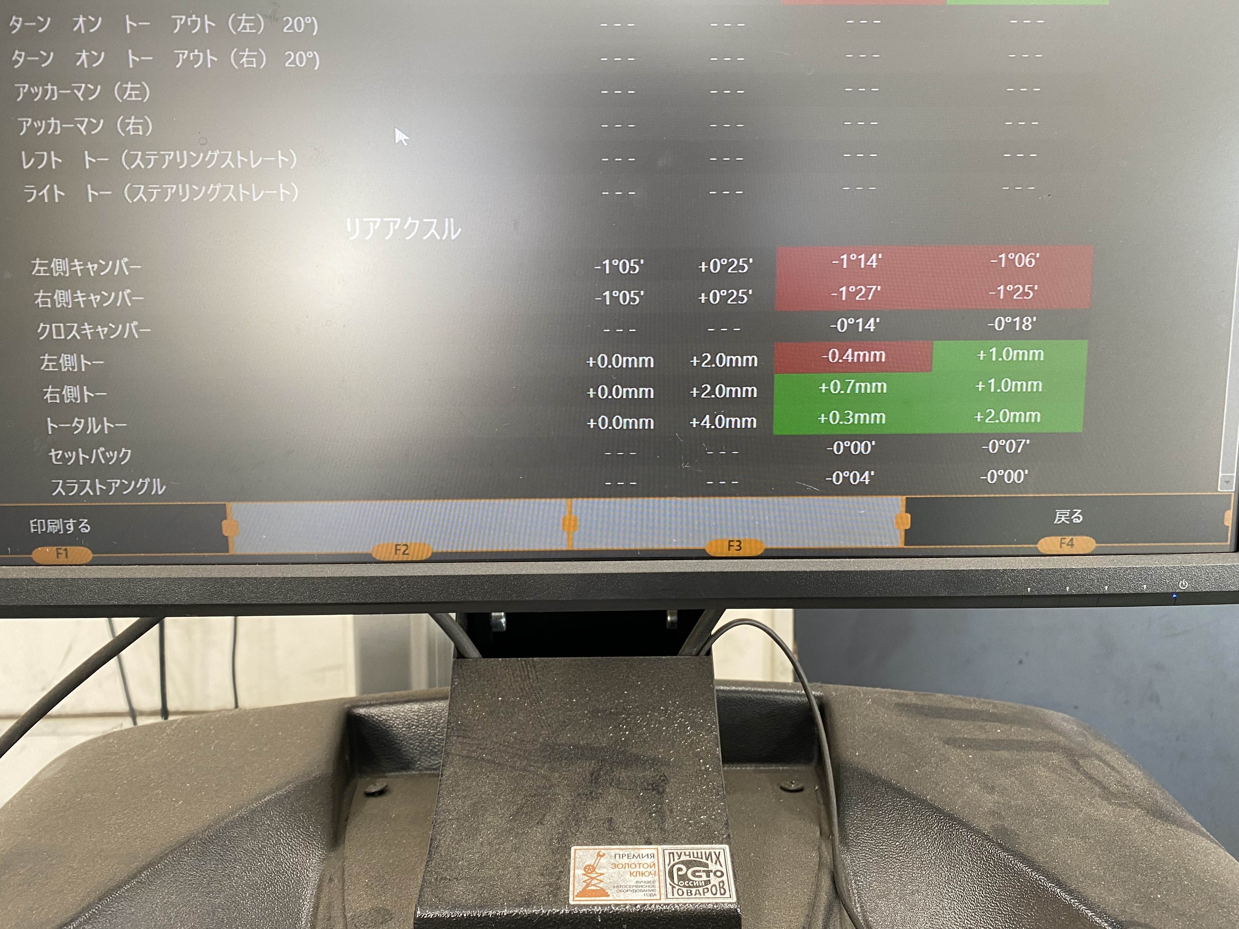 IMG_4530.JPGIMG_4536.JPGリア・フロント共に基準値からズレていたので、基準値で調整させて頂きましたハンドルセンターのズレや、タイヤの偏摩耗が気になる方は是非アライメント調整を行いましょう!