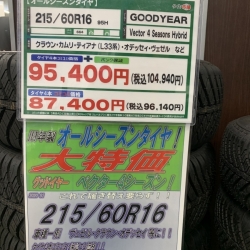 ステッカーにも記載がある通り、季節を選ばないオールシーズンタイヤなんです!