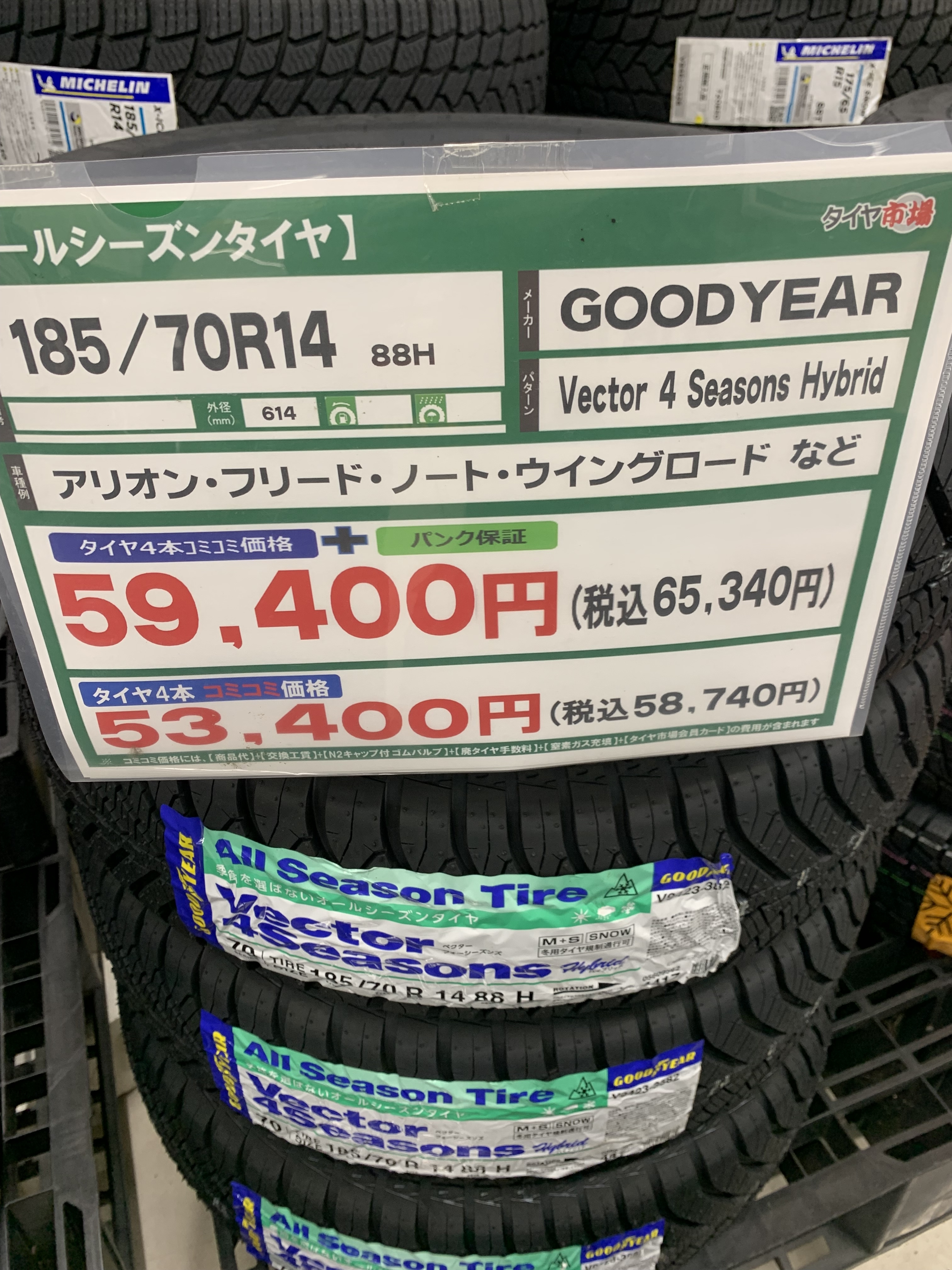 お値段がなんと・・・コミコミ58,740円 パンク保証込65,340円で交換出来ます!