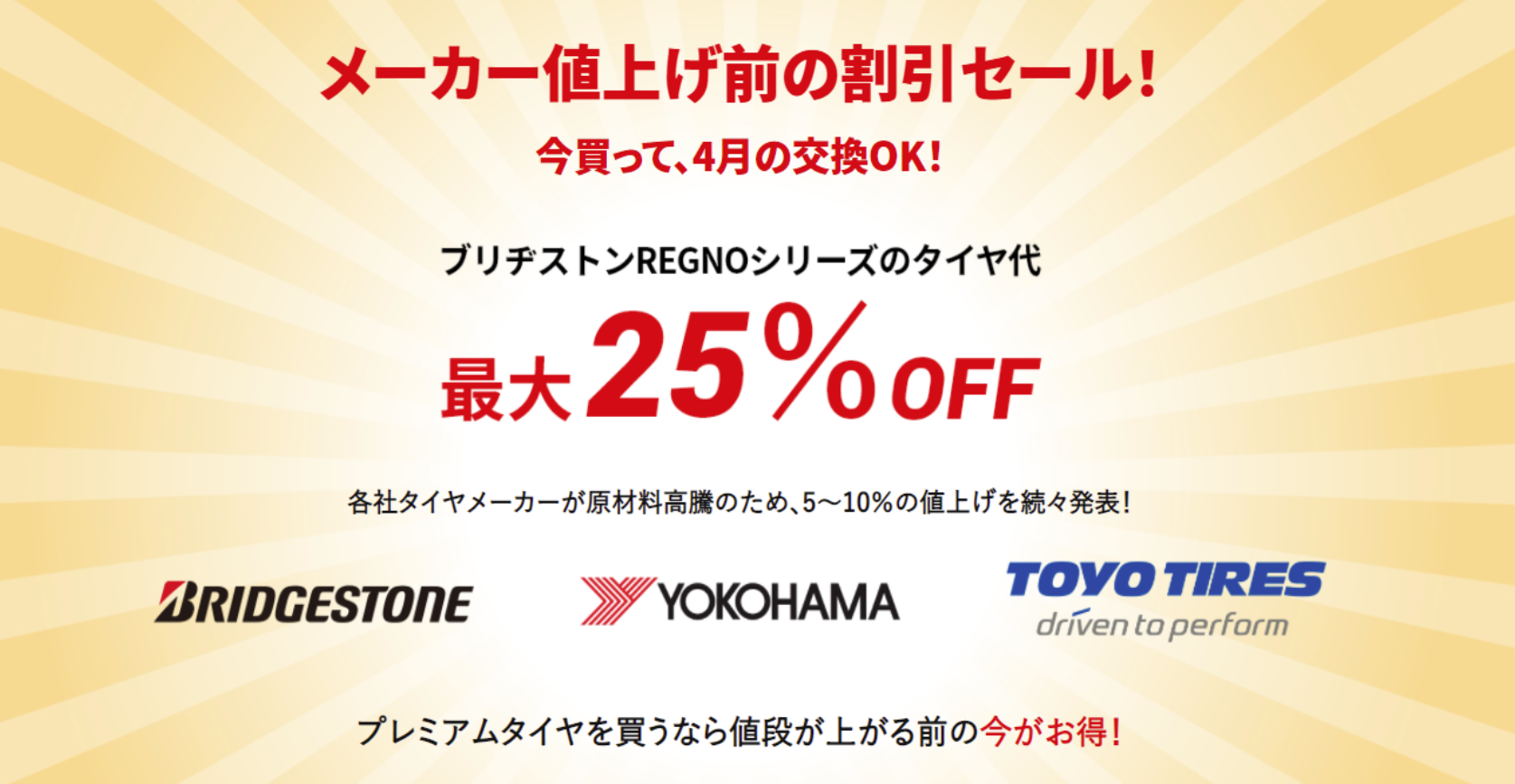 各タイヤメーカさんが値上げを発表しましたね・・・