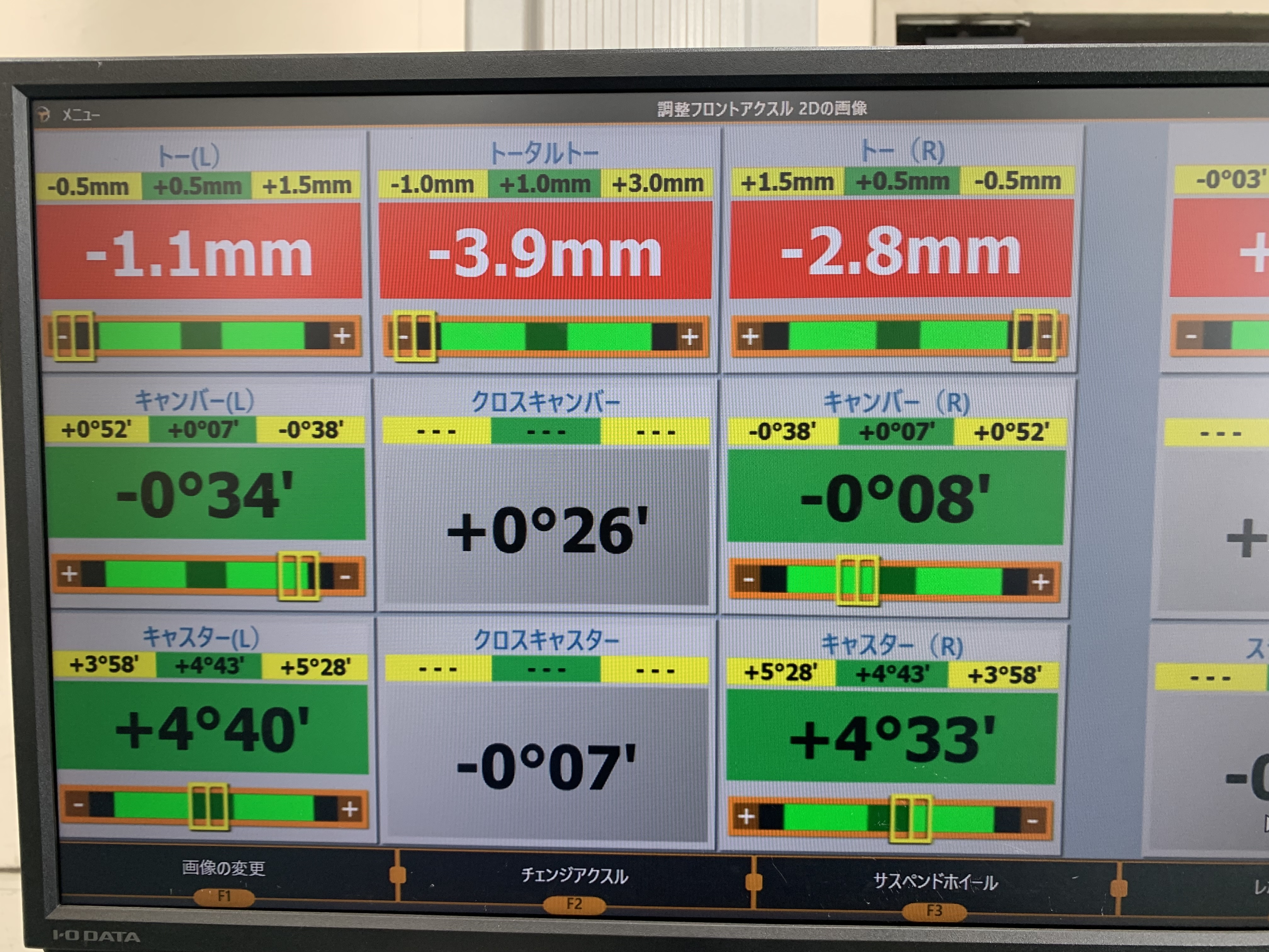 ※アライメントは足回りの部品、ボルト1本を緩めただけでもアライメントは狂います。
