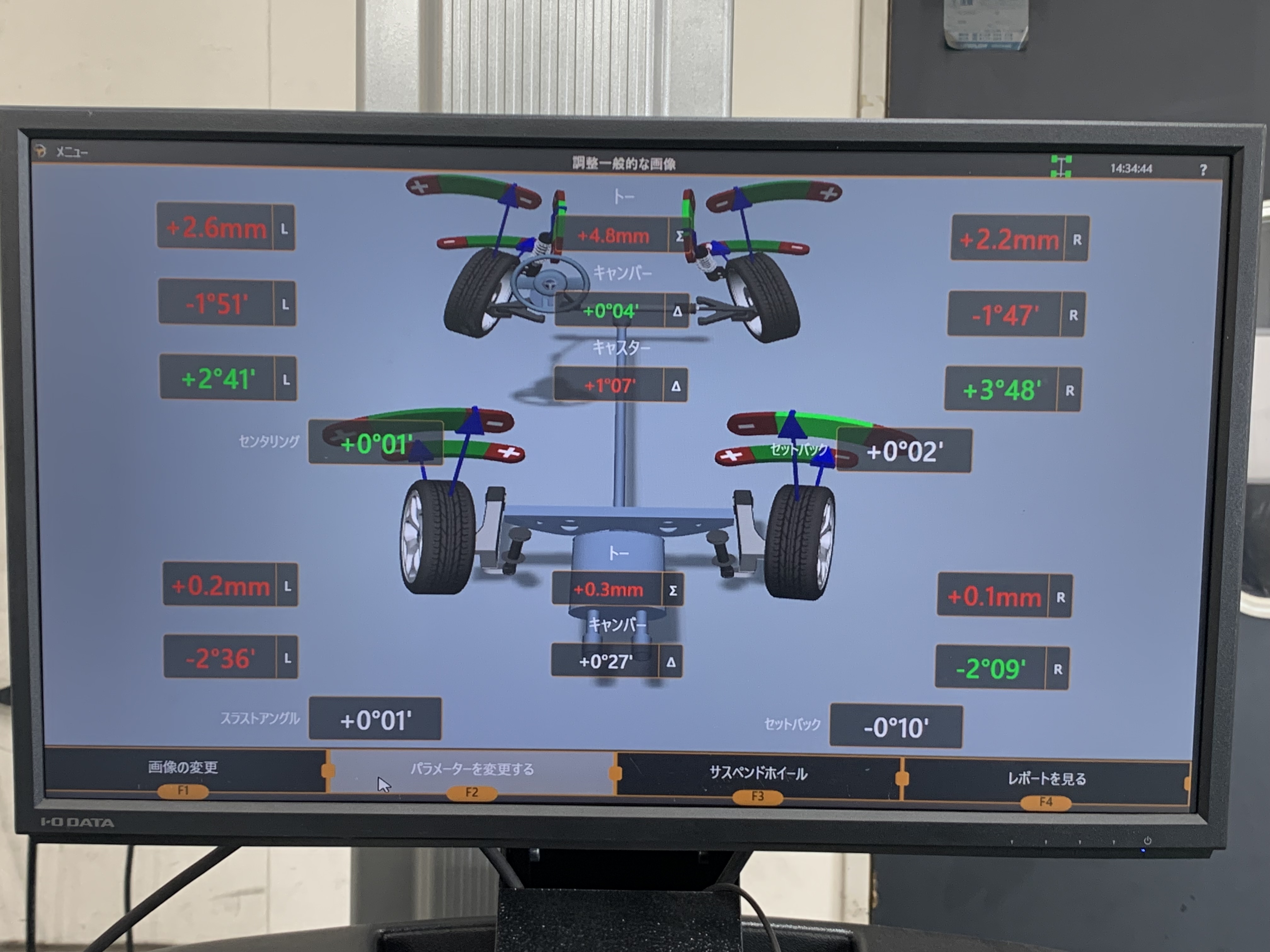 ※アライメントは足回りの部品、ボルト1本を緩めただけでもアライメントは狂います。