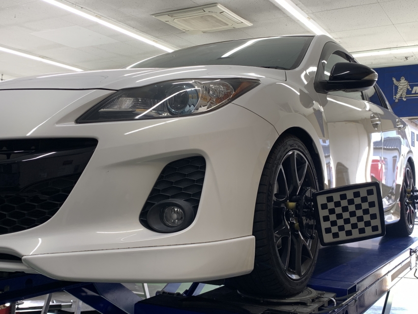マツダのアクセラで足回りの調整をさせて頂いました(^▽^)/