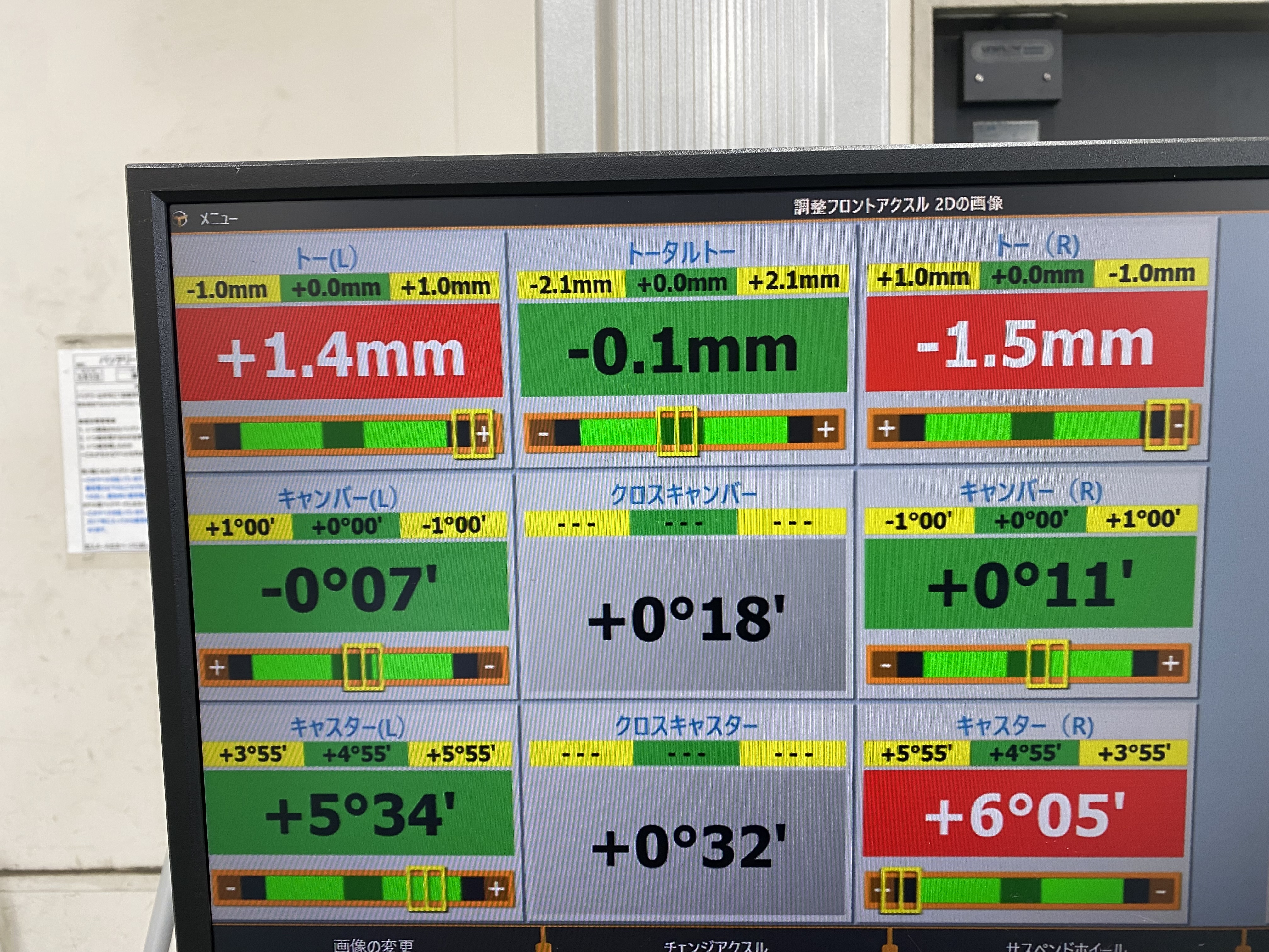 今回は基準値で調整をさせて頂き、タイヤの偏摩耗を抑制しました。