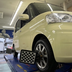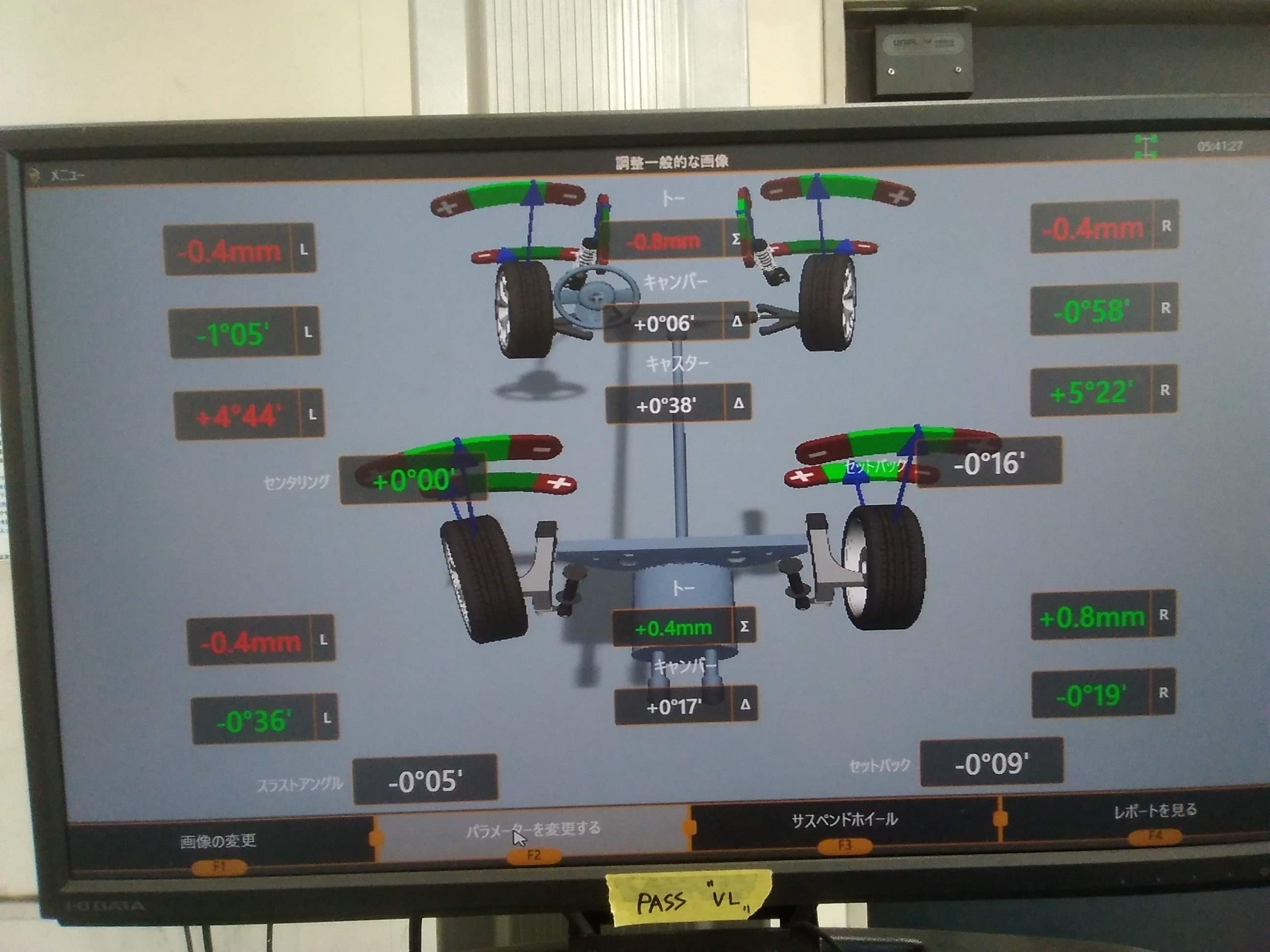 車輪の向きや角度を調整してあげる事で走行時のコーナリング性能の改善、タイヤの溝の減り方が改善が出来ます!!