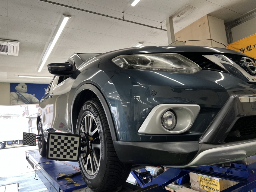 今回はエクストレイルでアライメント調整をさせて頂きました。