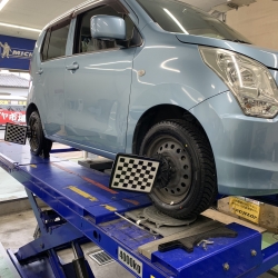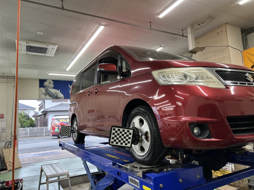 車輪の向きや角度をしっかりと整頓し、基準の数値内で揃うよう施工致しました。