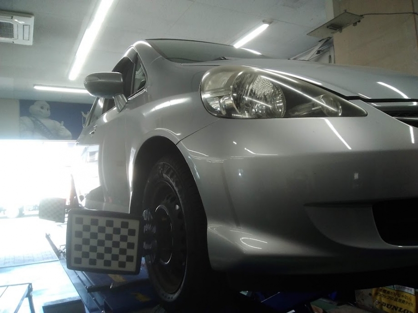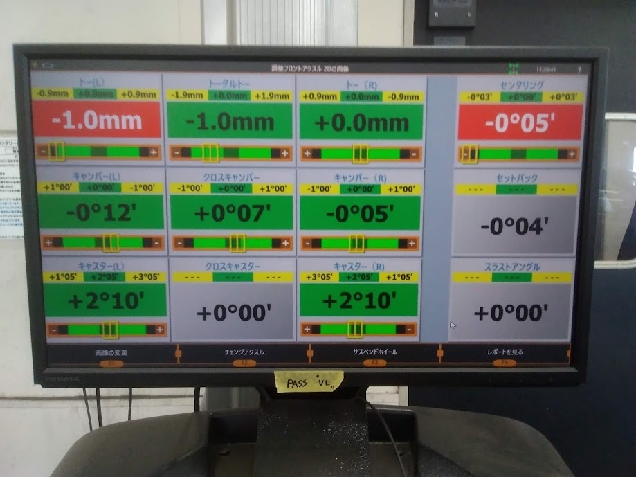 車輪の向きや角度をしっかりと整頓し、基準の数値内で揃うよう施工致しました。