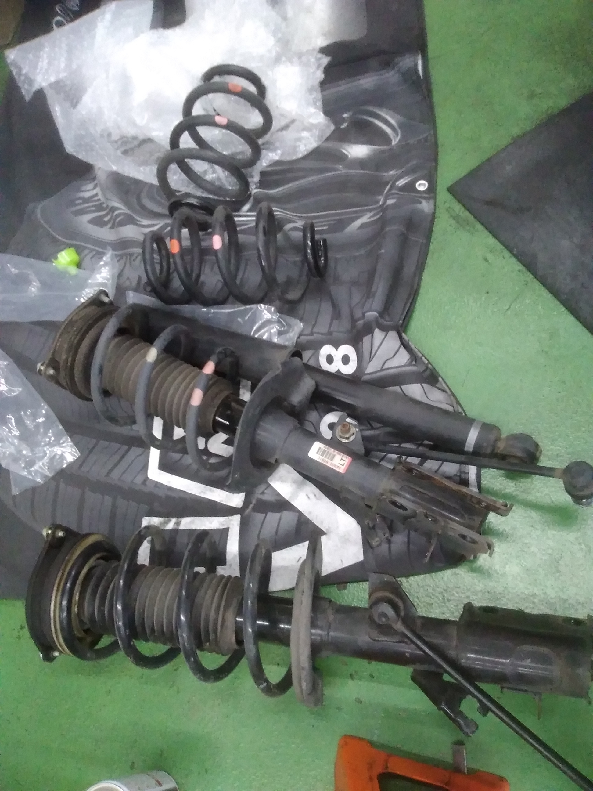 現在、セレナの車高調取り付け中!!!