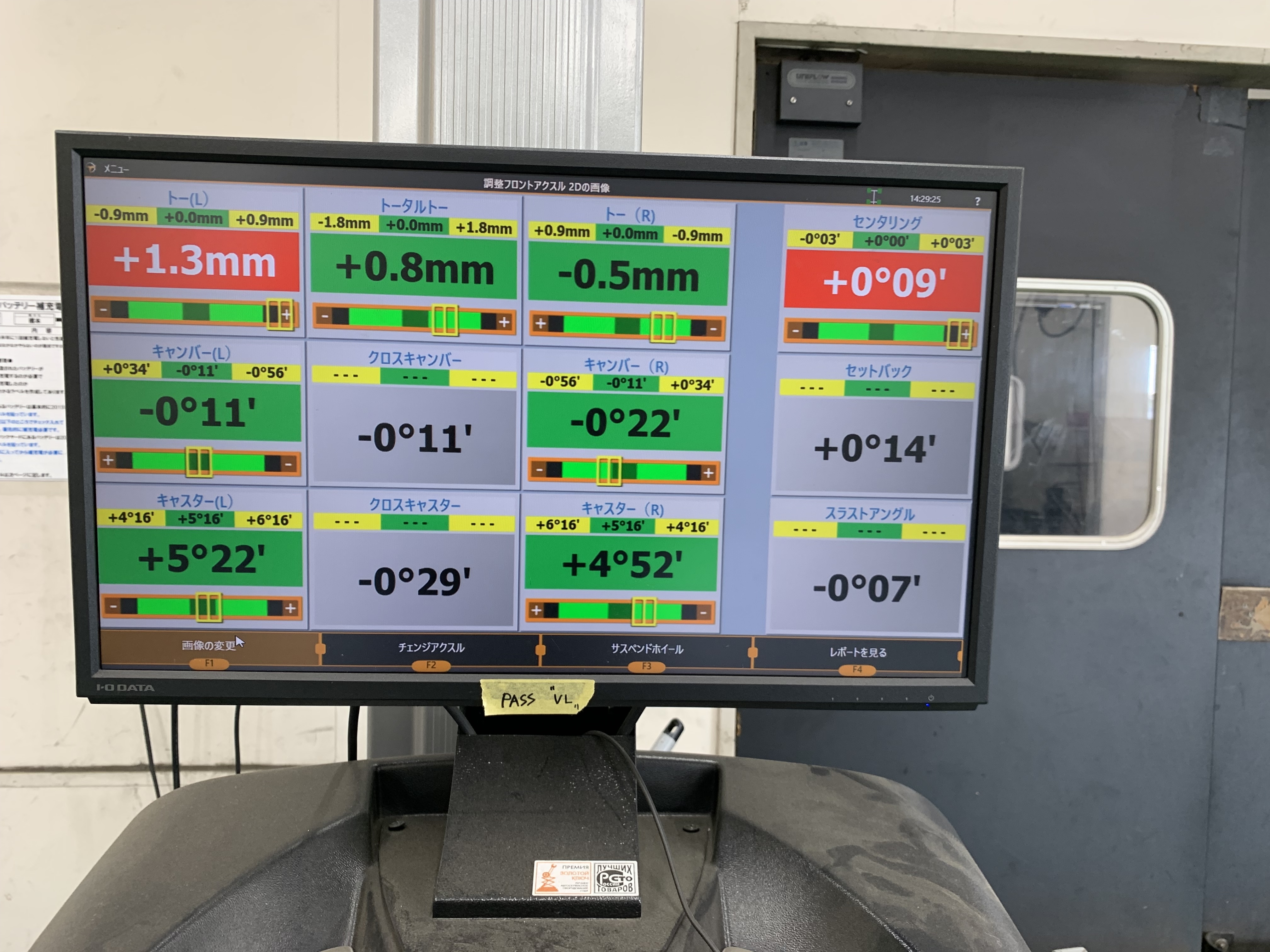 ※アライメントは足回りの部品、ボルト1本を緩めただけでもアライメントは狂います。