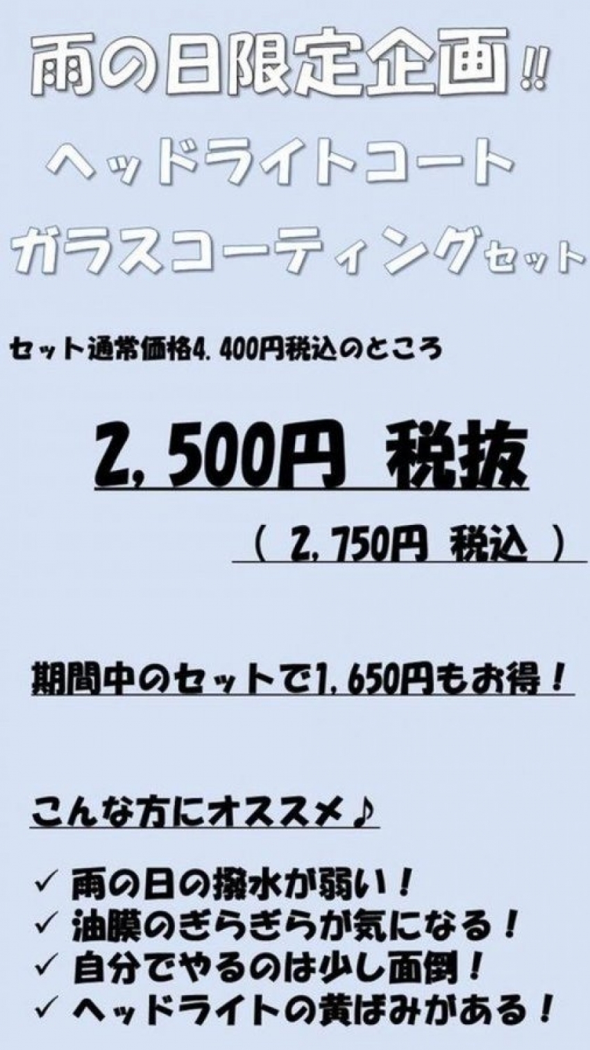 雨の日だけ¥2,750で作業しちゃいます(≧◇≦)