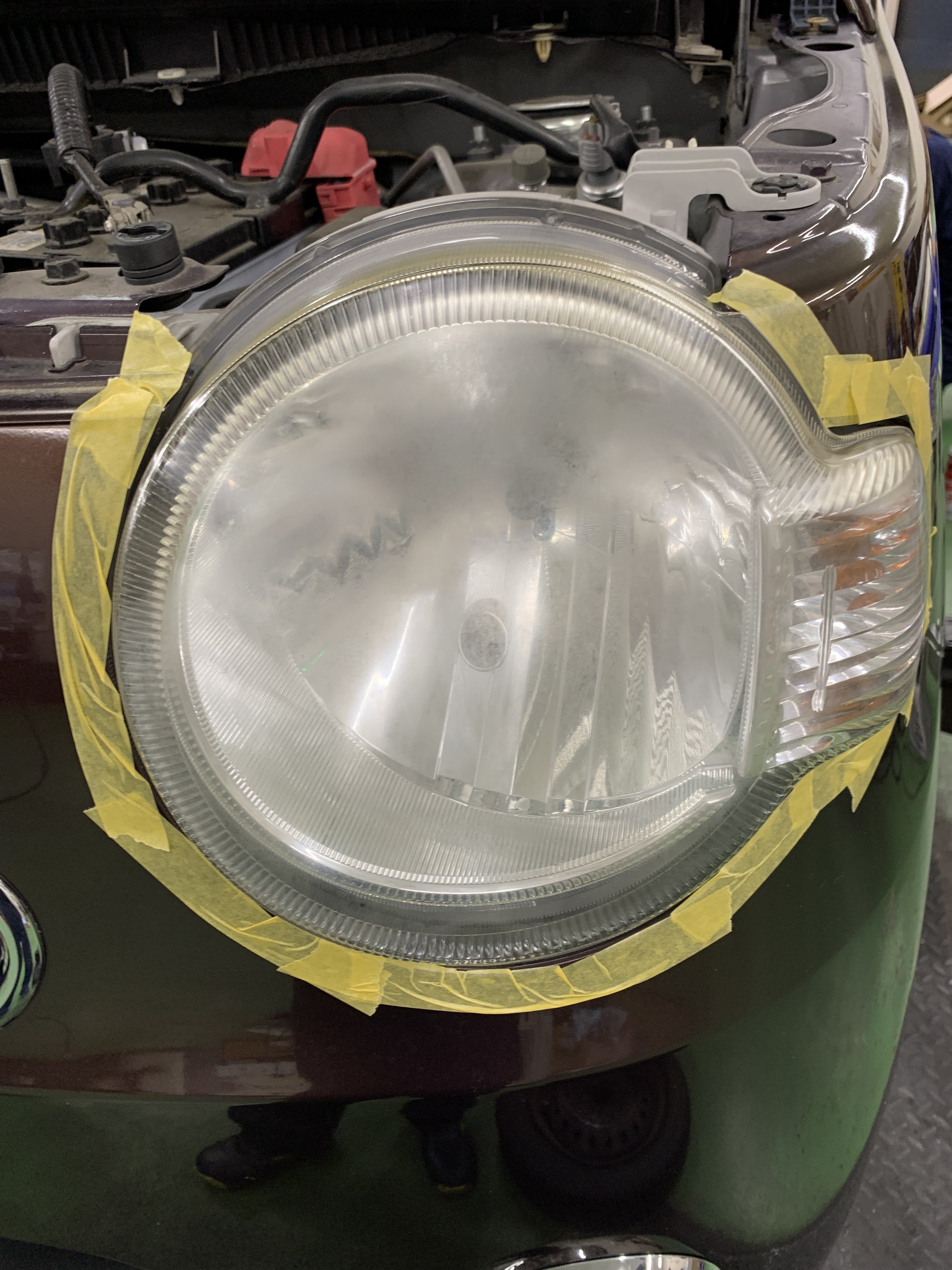 今回はミラココアでヘッドライトコーティングをさせて頂きました!