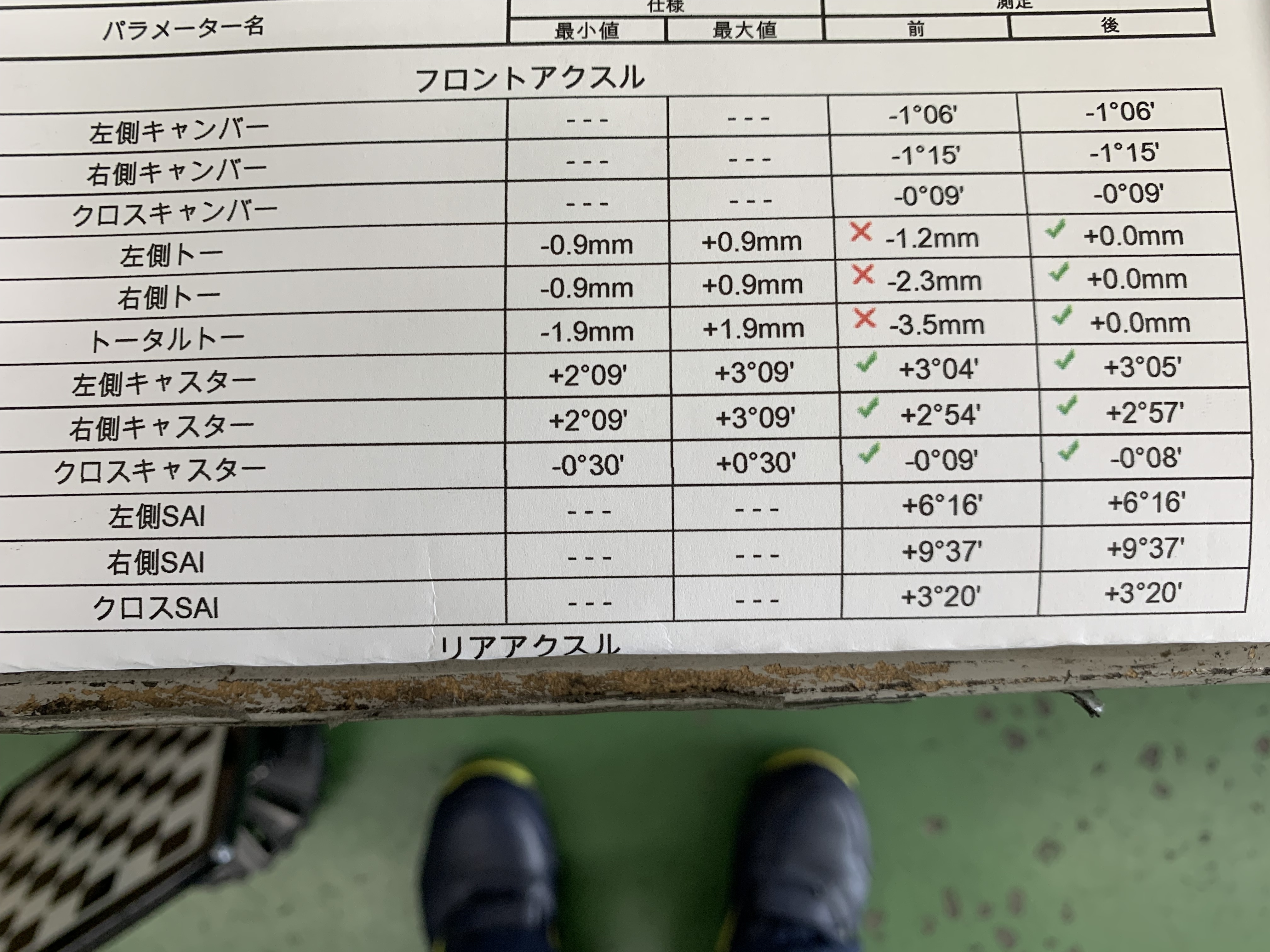調整後は左右のばらつきはなくなりハンドルセンターのズレもなくなりました!