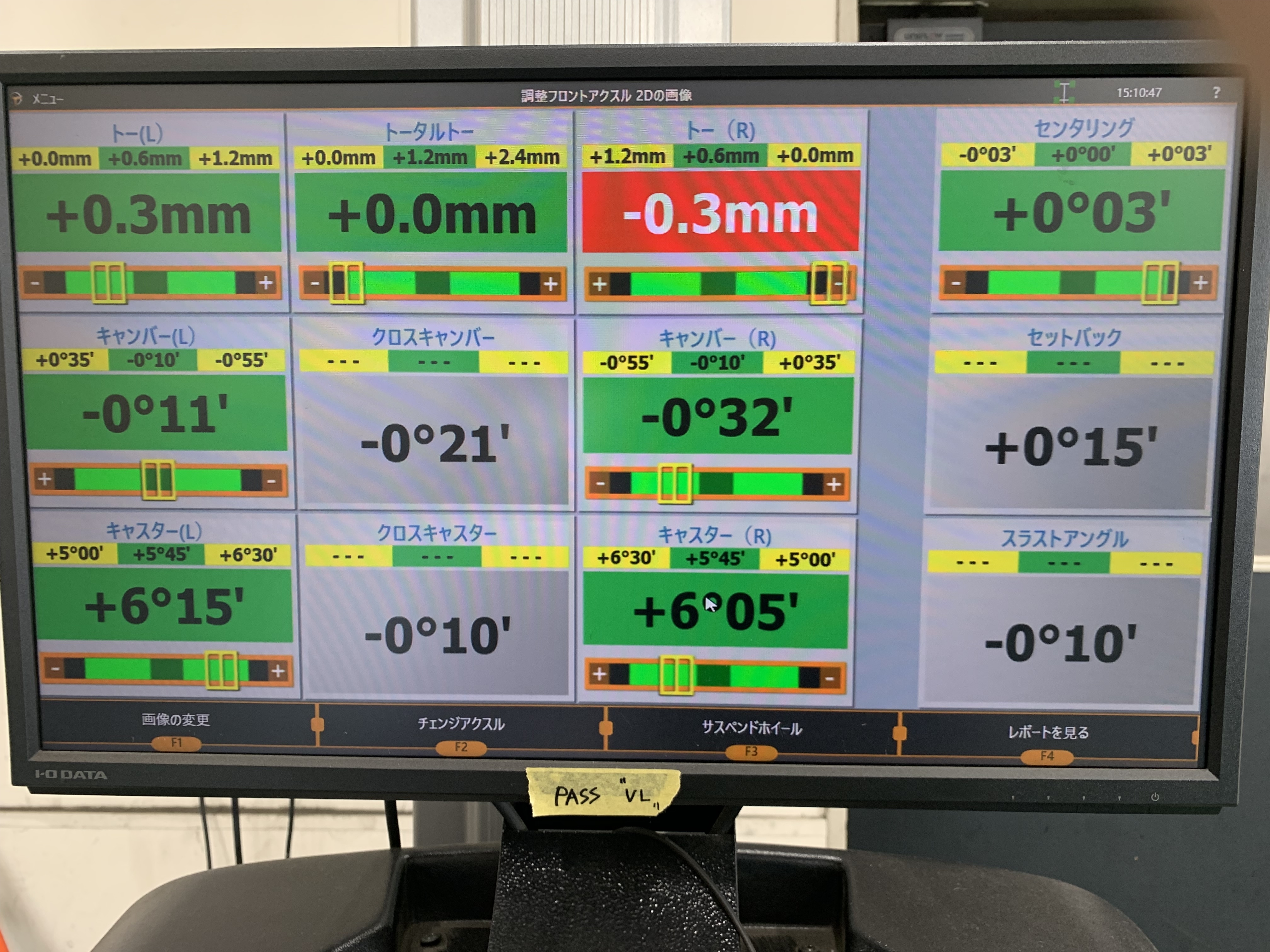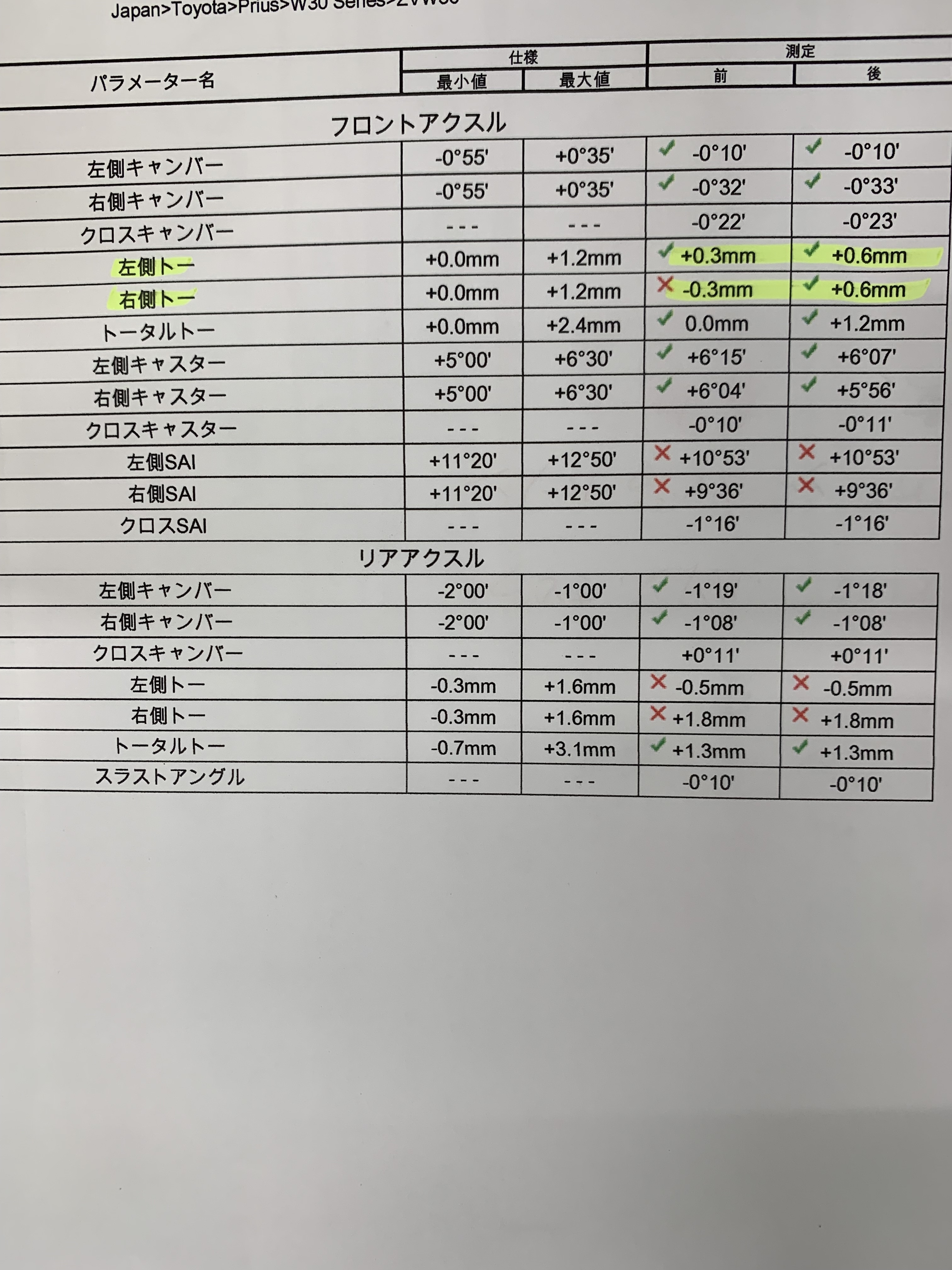 調整後は左右のトー角のバラつきは無くなりましたね!(^^)!
