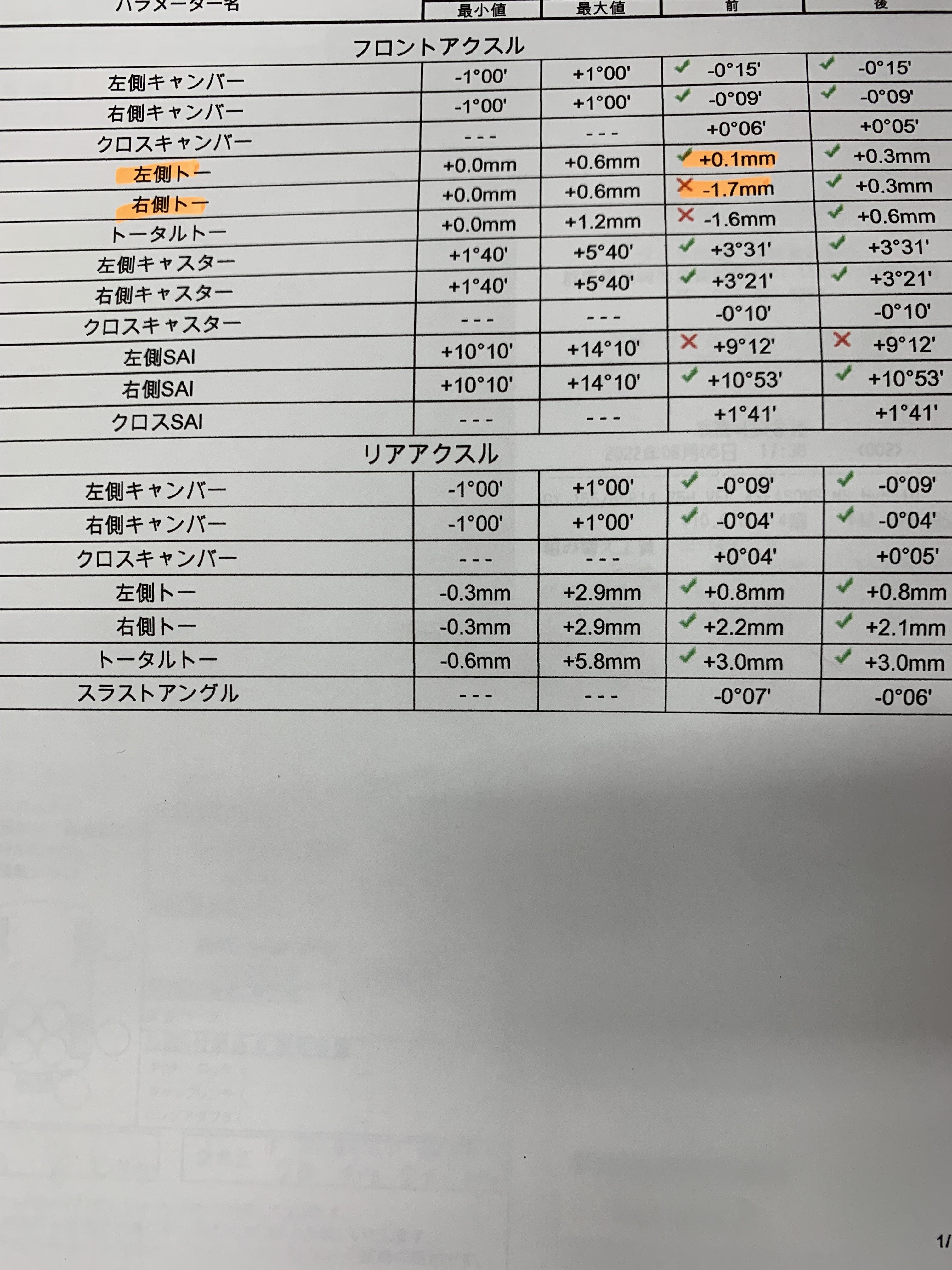 ラパンはフロントの左右トー角の調整になります!